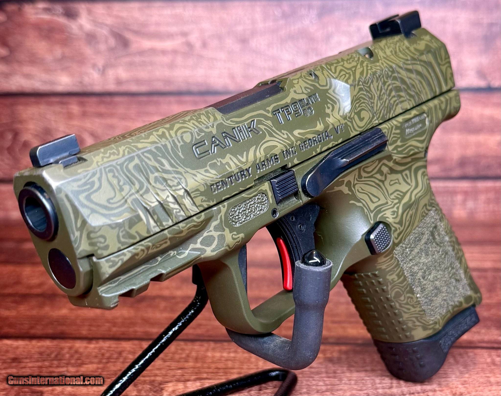 Description: Guns Listing ID: 601564 Introducing the Canik TP9 Elite SC, a subcompact, striker-fired 9mm pistol that embodies precision engineering and tactical design in a sleek, Damascus Green finish. This elite handgun is crafted for concealed carry enthusiasts who demand both performance and style. With its high capacity of 12+1 or 15+1 rounds, this model is designed for those who prioritize both power and discretion. Inspired by the Walther design, it boasts a snag-free profile, ensuring seamless draw and reholstering. Day/night sight options with the capability of co-witnessing with Micro Red-Dot sights that can be added by removing the optic plate. Firearm does not come with pistol case but does include one (1) 12 round magazine. The Canik TP9 Elite SC is in Excellent condition, exhibiting only light, superficial signs of prior handling or use. The minor surface marks are testament to its resilience and reliability. The bore is in excellent condition, featuring a clean finish with sharp lands and grooves, ensuring precise accuracy. This well-maintained firearm functions flawlessly, promising reliability and confidence in every shot. The TP9 Elite SC is more than just a firearm; it’s a testament to Canik’s commitment to innovation and quality. Whether you’re a collector, a concealed carry permit holder, or a gun enthusiast, this model offers a distinctive blend of compactness and firepower. Its shorter 3.5\" barrel and striker action provide a balance of concealability and performance, making it a top choice for personal defense. The Damascus Green finish not only adds an aesthetic edge but also enhances durability against the elements. Seize the opportunity to own this remarkable piece of craftsmanship. With its superior design, high capacity, and included extras, the Canik TP9 Elite SC is a smart investment for anyone looking to enhance their firearm collection or personal defense armory. Specifications Manufacturer Canik Model TP9 Submodel Elite SC Caliber 9mm Luger Overall Condition Excellent Bore Condition Excellent Action Striker Capacity 12 + 1 Barrel Length 3.5\" Finish Damascus Green SOLD Manufacturer: CANIK Model: Canik TP9 Elite SC Damascus Green Caliber Info: 9MM LUGER (9x19 PARA) Condition: Used - Non-Certified Barrels: 3.6" BARREL Action: SEMI AUTOMATIC Finish: DAMASCUS |