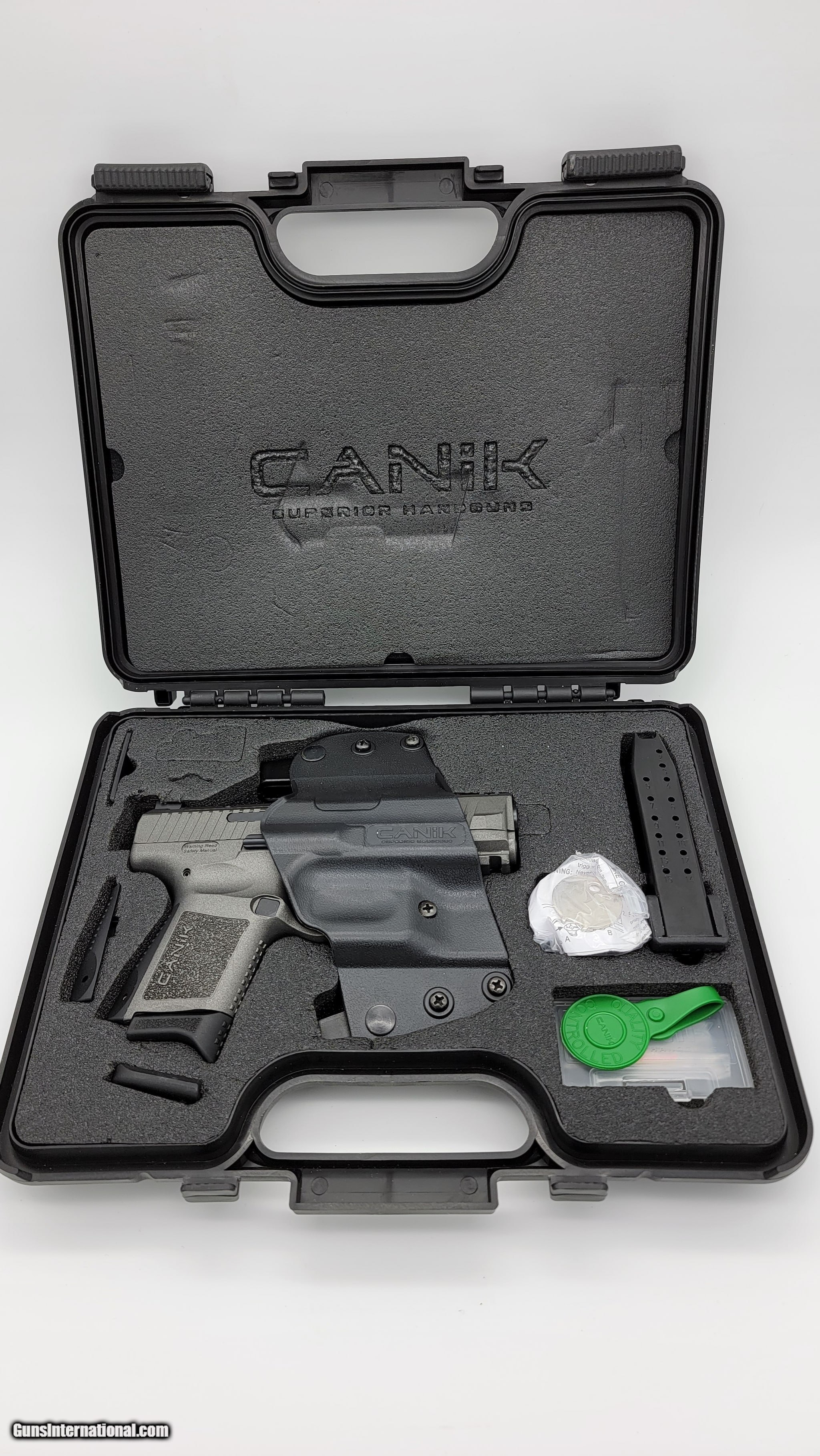 Description: Guns Listing ID: 704424 This is a preowned CANIK TP9 ELITE SC pistol in EXCELLENT condition. Comes as pictured with 2 magazines, original case, and has very minor cosmetic wear. WEIGHT 1.55 lbs CAPACITY 12/15+1 rounds FRONT SIGHT Phosphorous Front Dot Sight CARTRIDGE 9mm Luger MAGAZINE TYPE Canik Sub-Compact Size Magazine REAR SIGHT Blackout MAGAZINE INCLUDED 1 x 12 & 1 x 15-Round Magazine FINISH COLOR Tungsten Grey ACTION TYPE Semi-Automatic FRAME MATERIAL Synthetic OVERALL LENGTH 6.7\" BARREL LENGTH 3.6\" HEIGHT 4.6\" WIDTH 1.45\" MANUFACTURED Made in Turkey I#1015291-NNM-EM SOLD Manufacturer: CANIK Model: CANIK TP9 ELITE SC Caliber Info: 9 MM Condition: Used - Non-Certified Barrels: 3.6 BARREL Finish: TUNGSTEN GRAY |