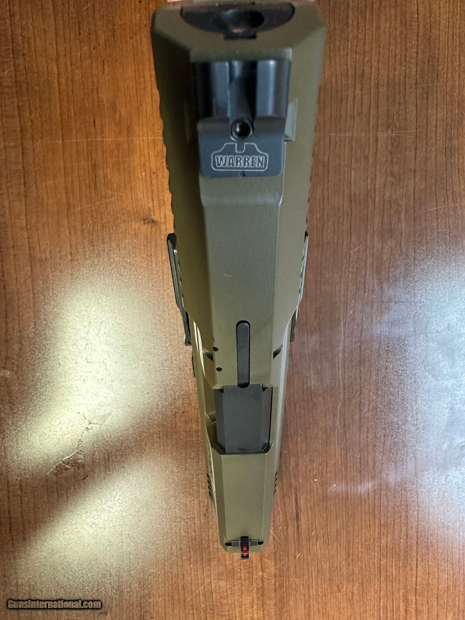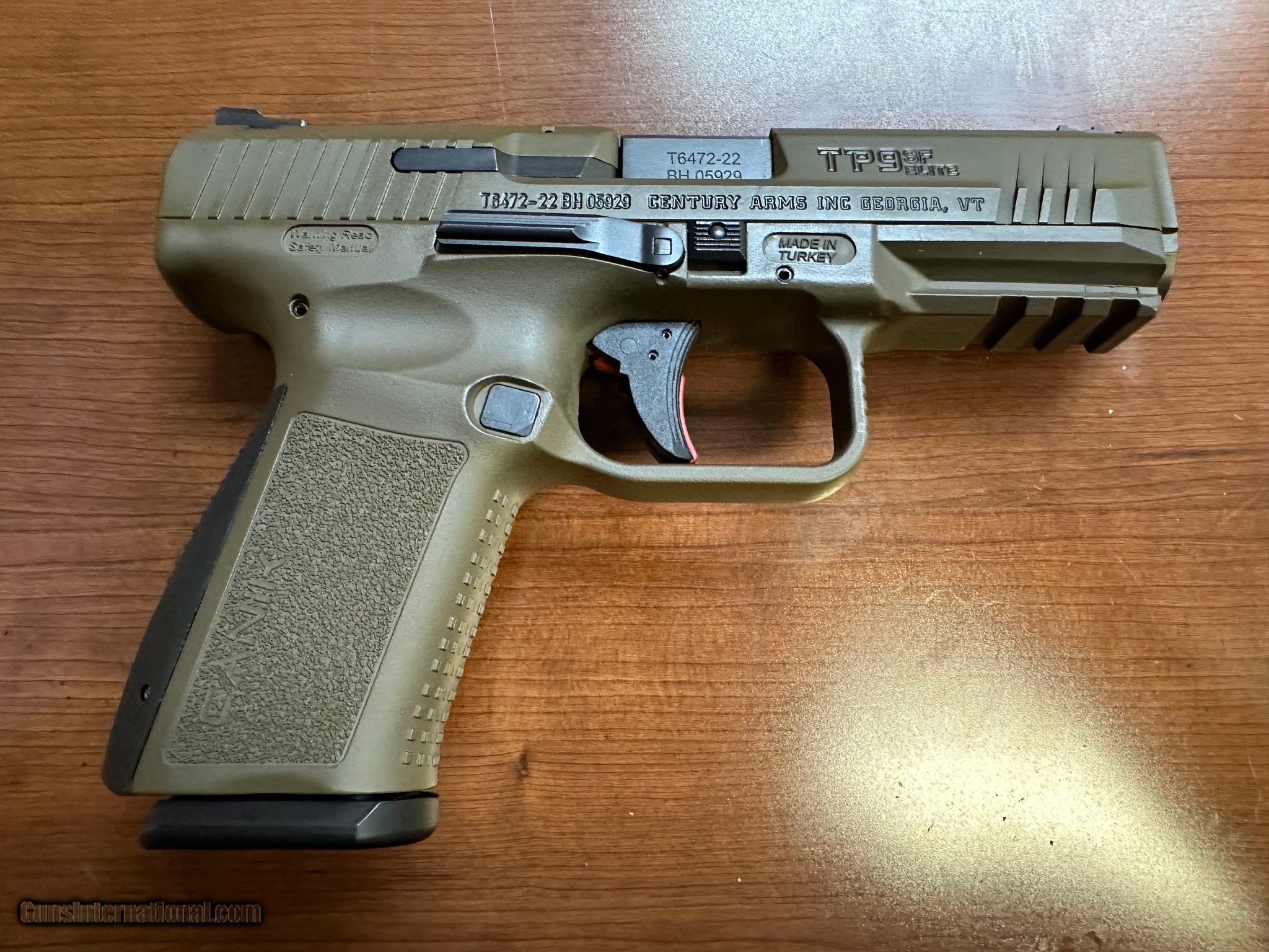 Description: Guns Listing ID: 1367826 The TP9SF Elite comes with industry standard dovetail sight cuts, improved single action trigger, and a MIL-STD-1913 Picatinny rail. It features a match grade barrel, loaded chamber indicator, striker status indicator, ambidextrous slide stop, and reversible magazine catch SOLD Manufacturer: CANIK Model: CANIK TP9SF CERAKOTE Green Caliber Info: 9MM LUGER (9X19 PARA) Condition: Used - Non-Certified Barrels: 4.2 BARREL Finish: GREEN/BLACK |