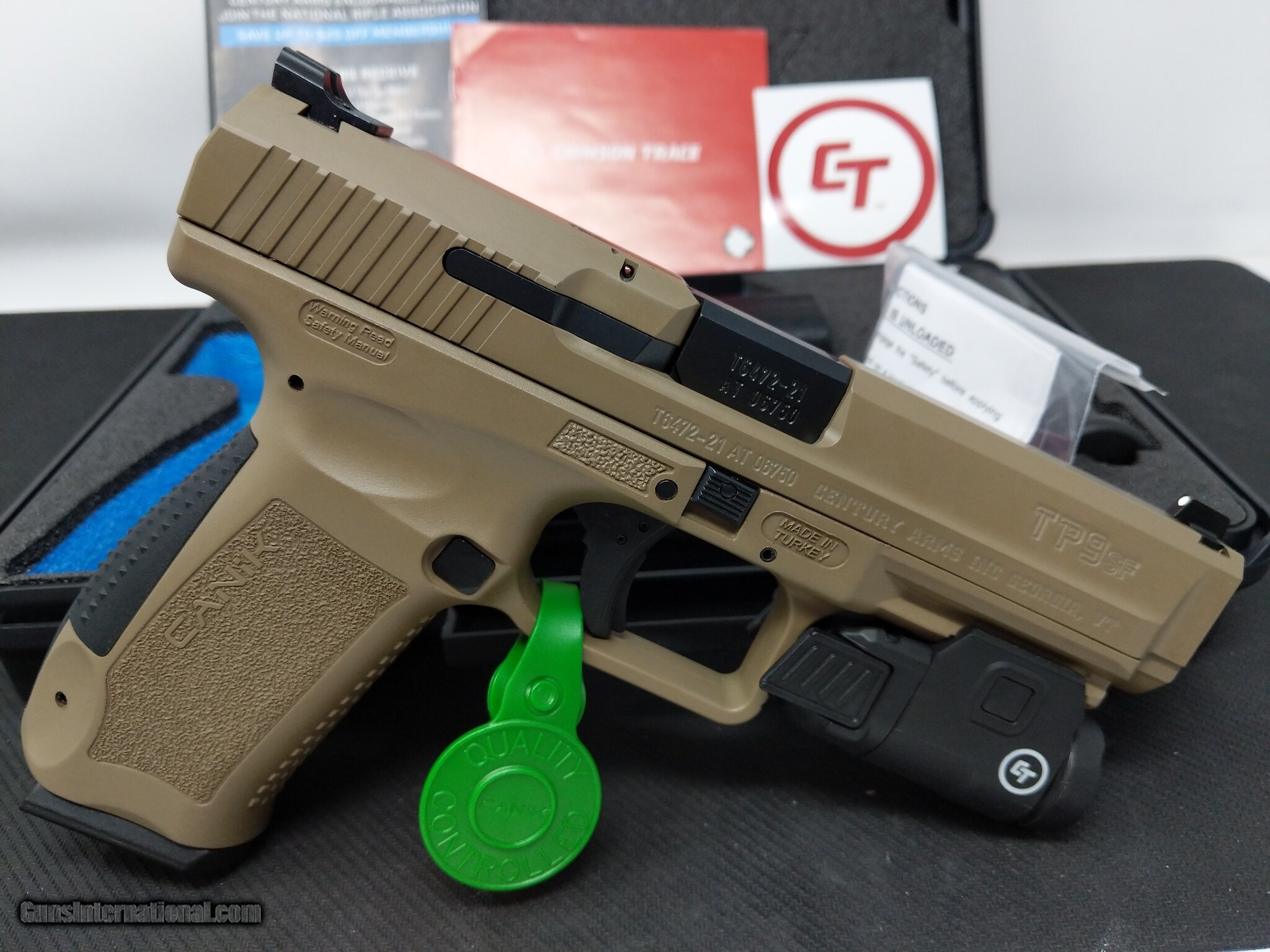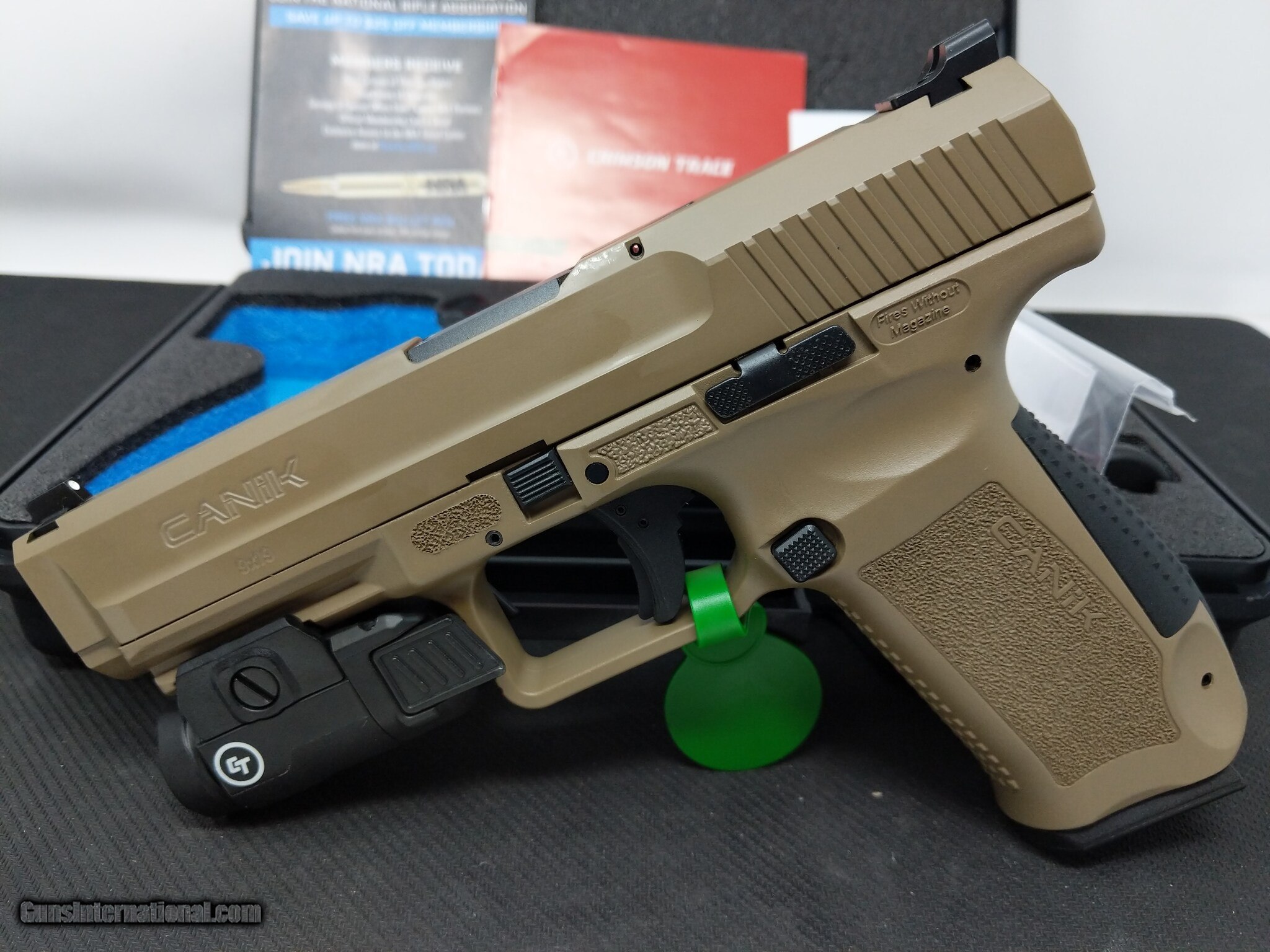 Description: Guns Listing ID: 607772 This is a brand new firearm! Never fired, fresh out the box. In original case with two 18rd magazines and brand new crimson trace flashlight. DEAL OF A LIFETIME!!! SOLD Manufacturer: CANIK Model: CANIK TP9SF Caliber Info: 9 MM Condition: Used - Non-Certified Barrels: 4.46 BARREL Finish: FDE |