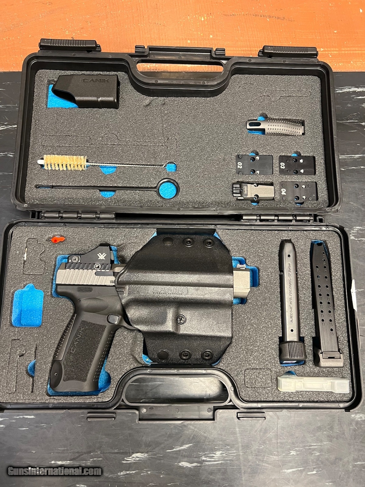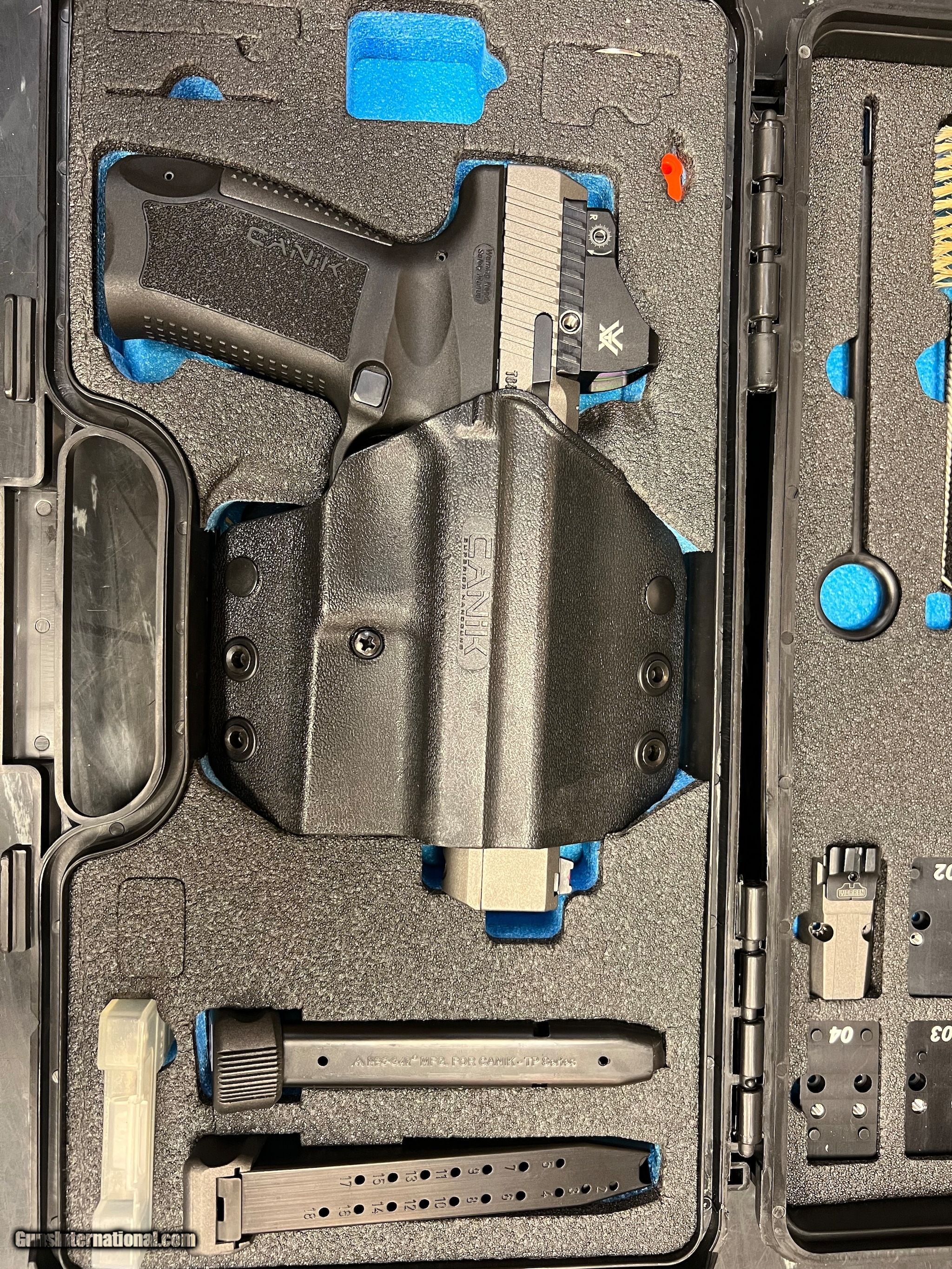 Description: Guns Listing ID: 843875 Used with case 2 magazines Viper vortex red Dot Holster SOLD Manufacturer: CANIK Model: CANIK TP9SFX Caliber Info: 9MM LUGER (9X19 PARA) Condition: Used - Non-Certified Barrels: 4 BARREL Finish: BLACK & GREY |
