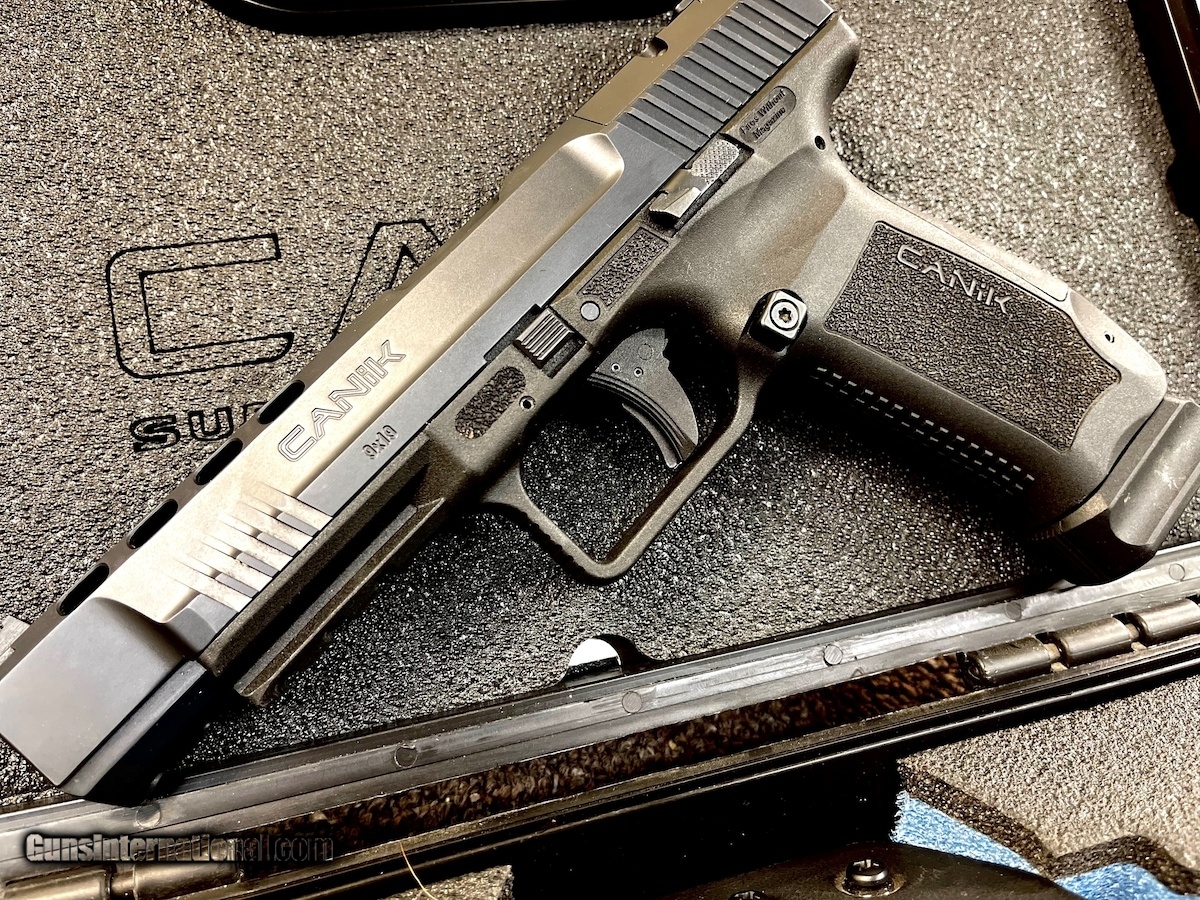 Description: Guns Listing ID: 506796 Designed with a 5.2-inch match-grade barrel, the Canik TP9SFx 9mm Luger Semiautomatic Pistol has a serrated slide with lightning cuts, a Warren fiber-optic front sight and a striker status indicator. The slide stop is extended and ergonomically designed, and the magazine catch is adjustable and reversible. Includes additional magazine, backstrap optic plates, fiber optic sights kit, all cradled up in the original box. SOLD Manufacturer: CANIK Model: CANIK TP9SFX Caliber Info: 9 MM Condition: Used - Non-Certified Barrels: 5 BARREL Finish: BLACK |