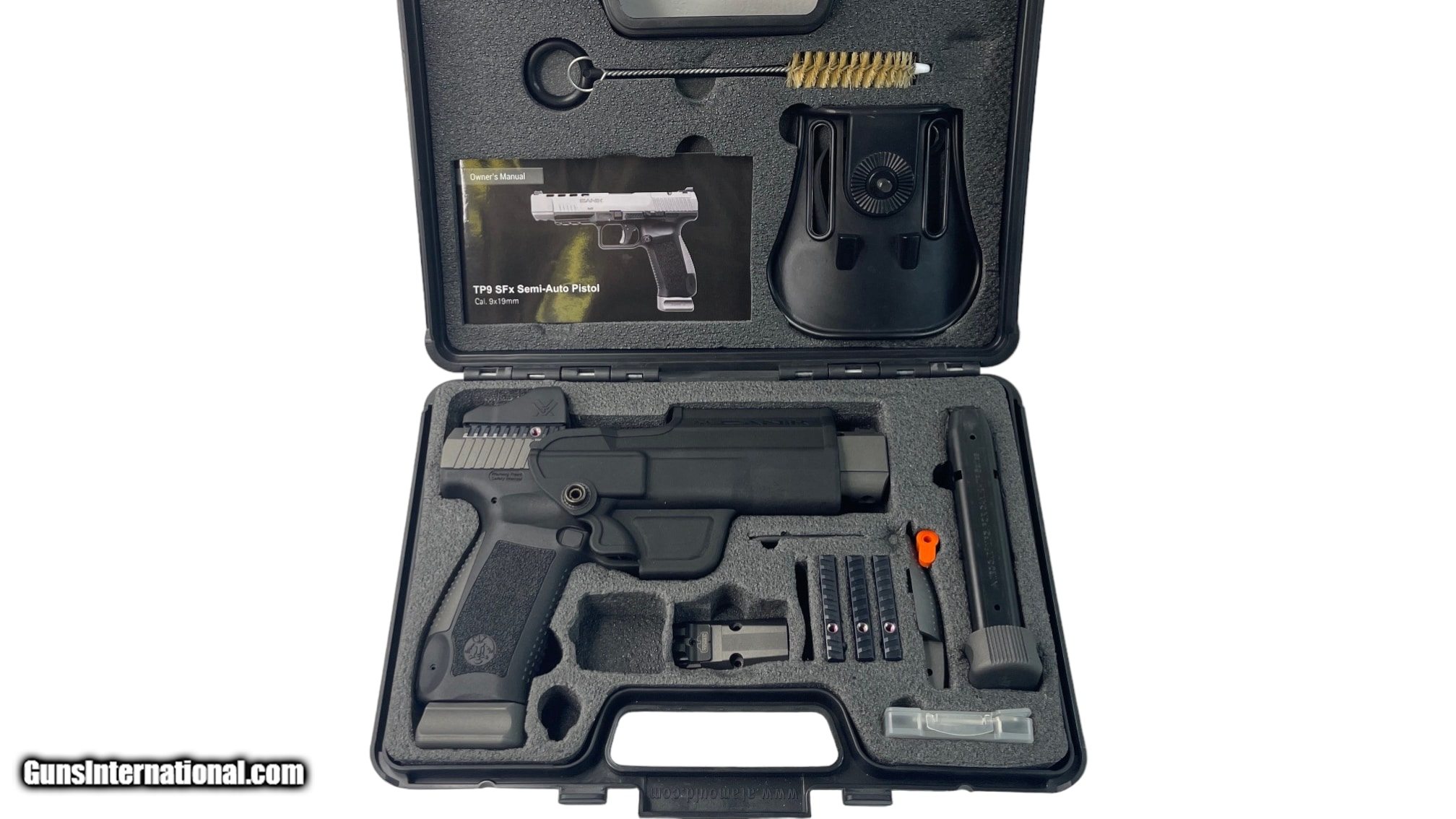 Description: Guns Listing ID: 821855 Listing is for a used but ALMOST LIKE NEW Canik TP9SFx semi-auto pistol chambered in 9mm. Pistol has 5.2\" barrel, a 20rd magazine capacity, tungsten finished slide, black frame, ported slide, extended magazine release, is mounted with a Vortex Viper red dot, and a front fiber optic sight (red). Overall pistol is in very good condition with little sign of actual use/wear. Bore is bright and sharp. Listing includes original case, manual, 2x 20rd magazines, OWB holster, and all optic plates and hardware. SOLD Manufacturer: CANIK Model: CANIK TP9SFX Caliber Info: 9MM LUGER (9X19 PARA) Condition: Used - Non-Certified Barrels: 5.2 BARREL Finish: TUNGSTEN |
