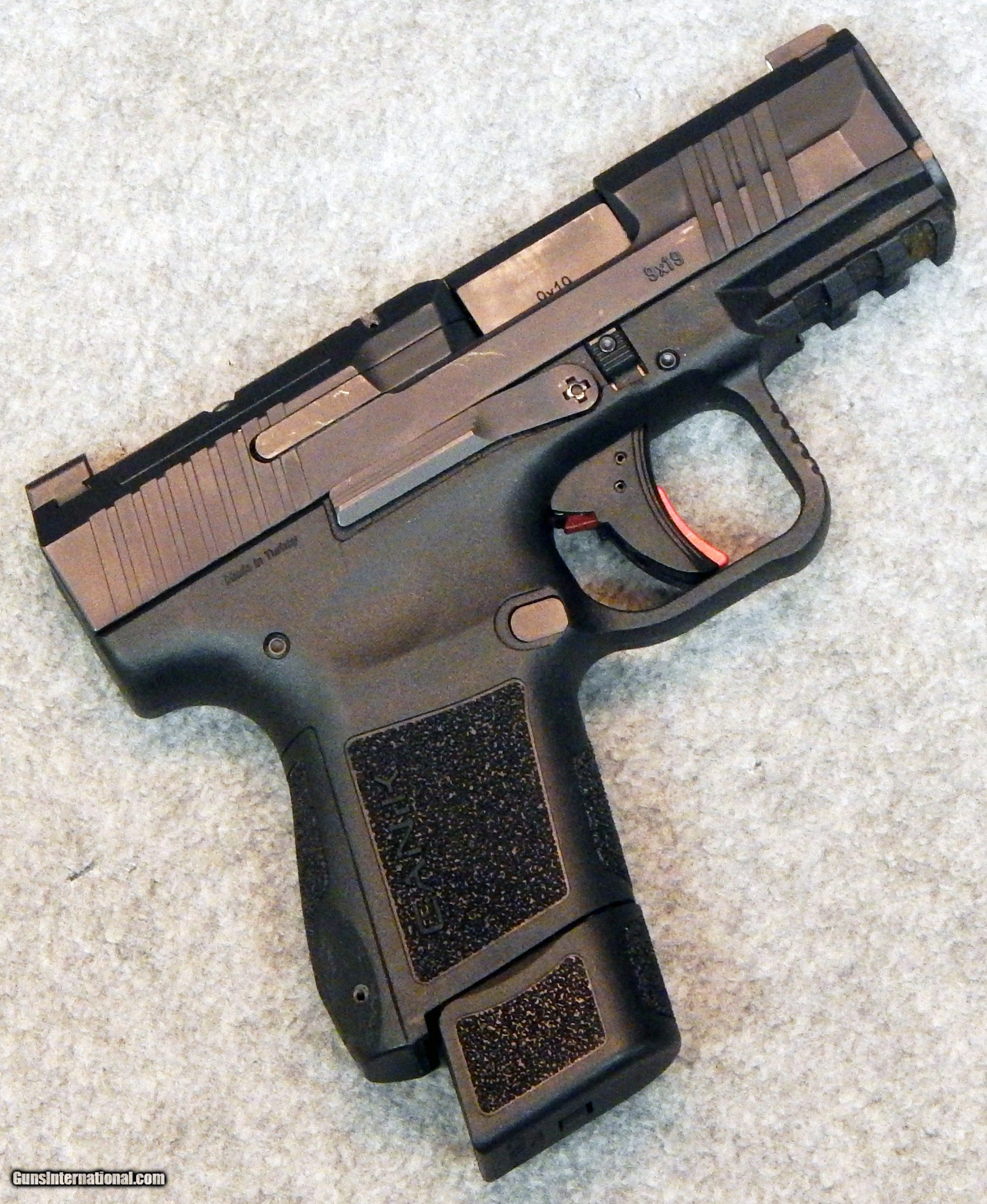 Description: Canik ~ METE MC9 ~ 9 mm Luger. Is a semi-auto micro-compact striker fire pistol. Features a 3" barrel paired with iron sights, along with a cut-out for mounting optics. Firearm has an overall black finish, live striker indicator, and safe action trigger. Comes with a single 15 + 1 capacity magazine and a factory kydex holster. 9mm Luger SOLD Chambers: 9 mm Luger. Metal Condition: Good condition. Bore Condition: Good condition. Barrels: 3" inches. Weight: 1.25 pounds Sights: Iron sights. Item Location: Acworth, GA |