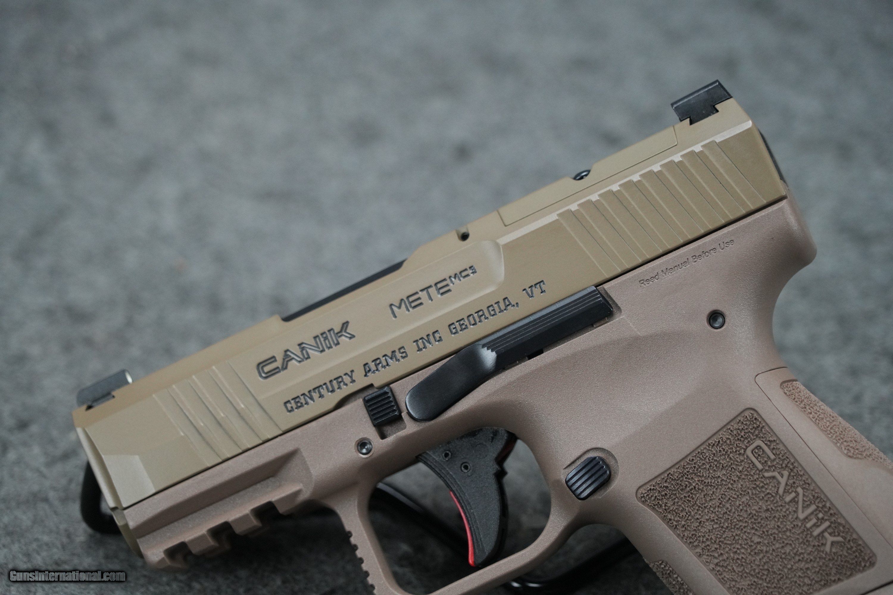 Description: The Canik Mete MC9 is chambered in 9x19 mm with a capacity of 12+1 and 15+1 (both magazine options included in the standard packaging). The MC9 supports an overall length of 6.1 inches, a width of just 1.12 inches, a height of 4.52 inches (with magazine), a barrel length of 3.18 inches, and an unloaded weight of a mere 21.2 ounces. The Mete MC9 comes optics ready with 100% co-witness capability. Each Mete MC9 comes in a hard case and includes the two magazines, an inside the waistband holster, 3 sized backstraps, tool kit and punch, speed loader, pinky rest, and cleaning kit. Includes: 12 and 15 Round Magazines (1) Finger Extension Magazine Base Plate Magazine Loader Custom Holster Canik Punch & Tool Kit Cleaning Brush and Jag Rod (3) Grip Backstraps Gun Lock & Manual Storage Case SOLD Handgun Caliber: 9x19mm Parabellum (9mm Luger, 9x19mm NATO) Manufacturer: Canik Model: METE MC9 Barrel Length: 3.18" Barrel Condition: BRAND NEW |