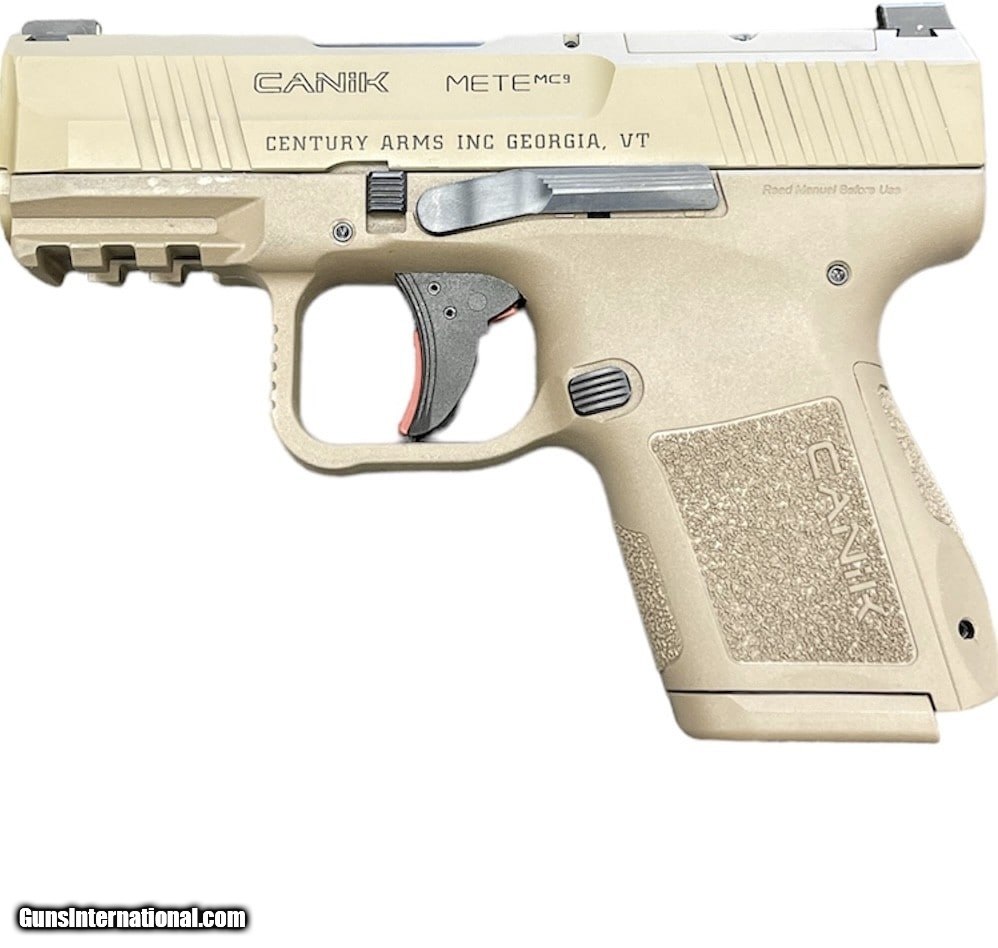 Description: Guns Listing ID: 1078612 Manufacturer: Canik Importer: Century Arms Model: METE MC9 Type: Handgun Action Type: Semi-Automatic Caliber / Gauge: 9 MM Finish: Cerakote Barrel Type: Single Grip Type: Polymer Barrel Length: 3 Magazine Capacity: 12 Magazine Quantity: 2 Case Type: Case - Hard Condition: Used SOLD Manufacturer: CANIK Model: METE MC9 Caliber Info: 9MM LUGER (9X19 PARA) Condition: Used - Non-Certified Barrels: 3 BARREL Finish: CERAKOTE |