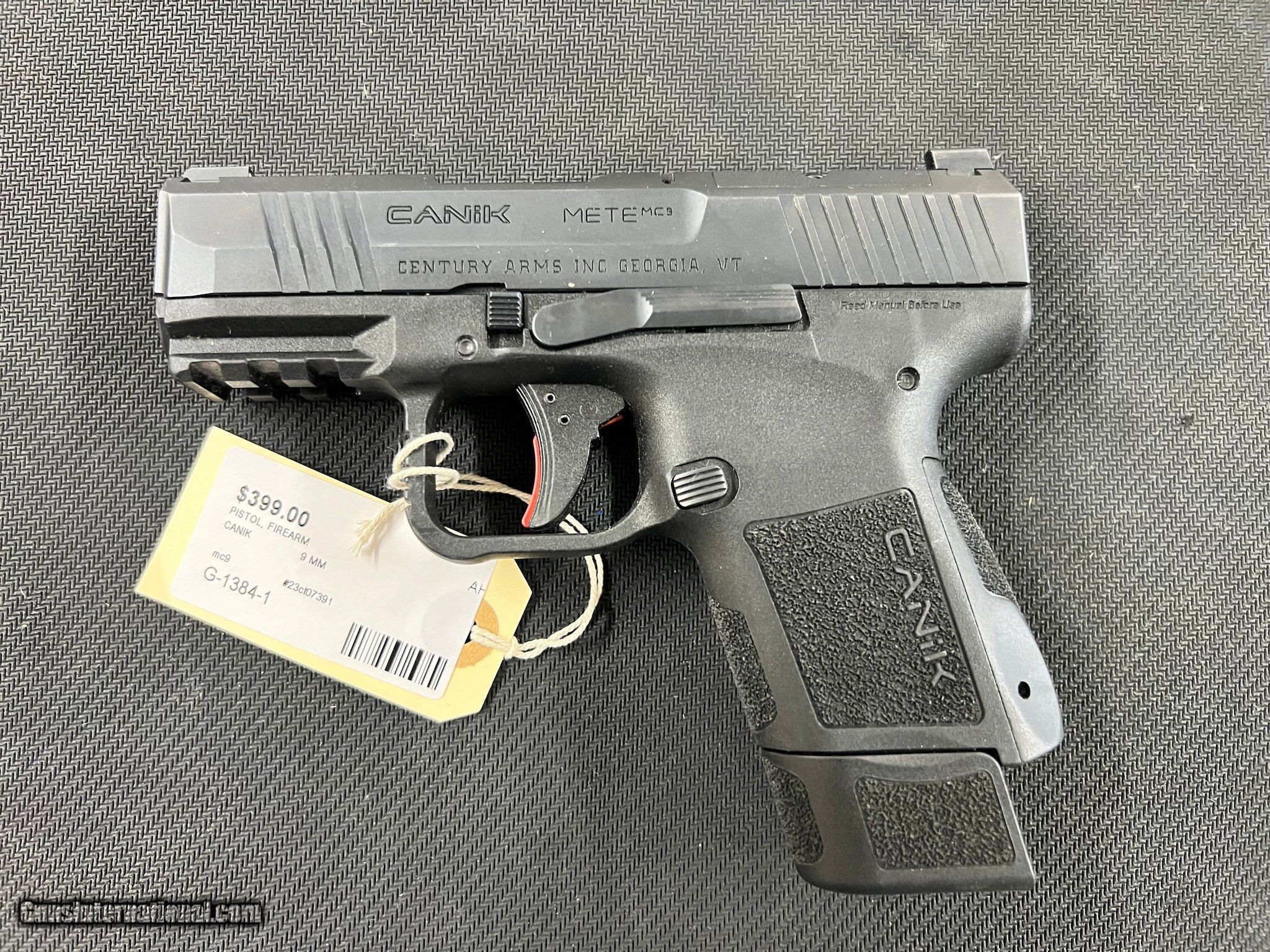 Description: Guns Listing ID: 1123477 ActionSemi-Automatic Barrel Length3.18\" Hand Ambidextrous Round Capacity12 + 1/15 + 1 Gun Weight21.2 oz. Optics ready 12-round magazine and 15-round magazine SOLD Manufacturer: CANIK Model: METE MC9 Caliber Info: 9MM LUGER (9X19 PARA) Condition: Used - Non-Certified Barrels: 2.5 BARREL Finish: BLUE AND BLACK |