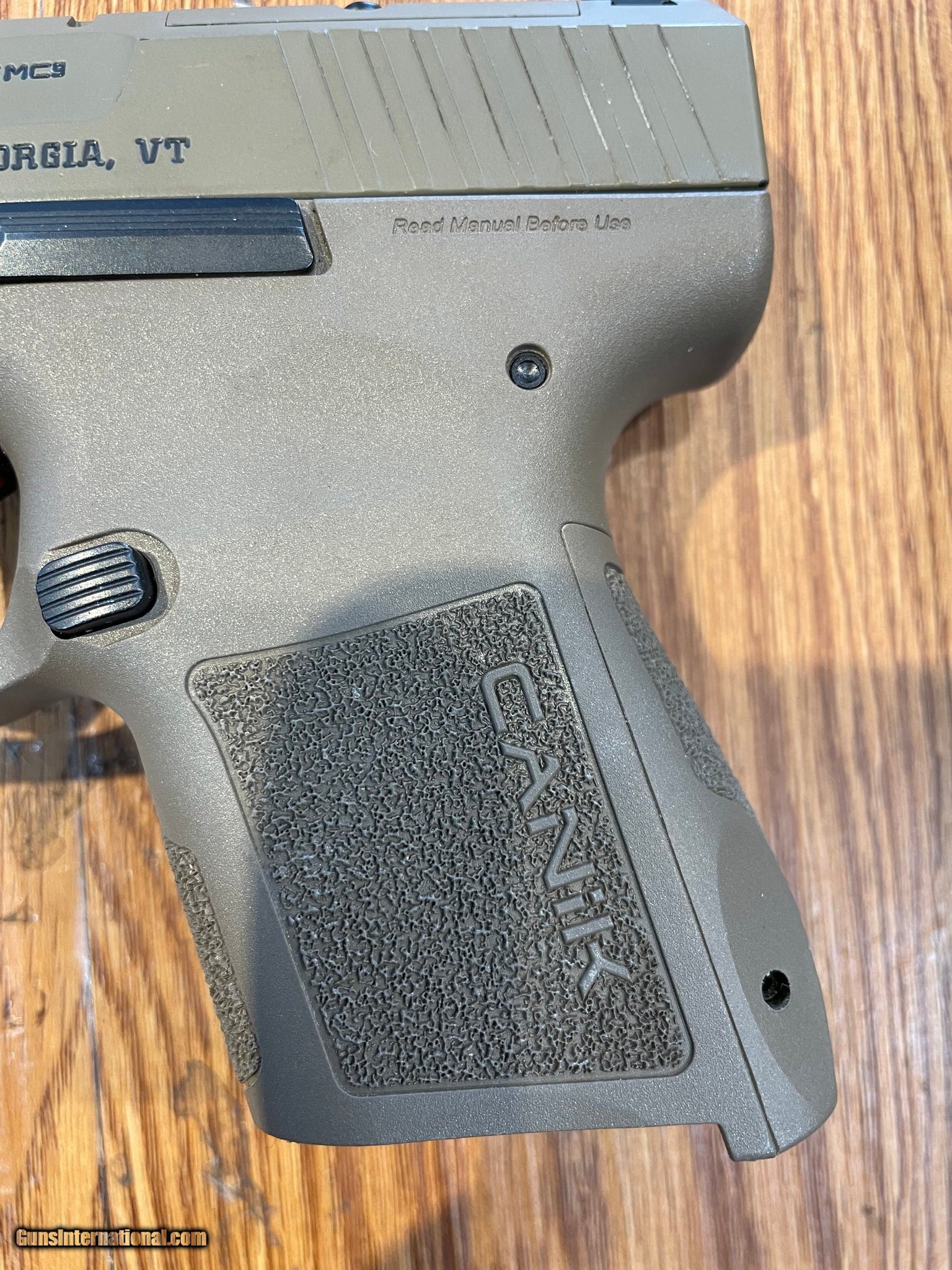 Description: Guns Listing ID: 591124 Psj009343/oss The CANIK Mete MC9 is a compact, striker-fired 9mm pistol designed for concealed carry, offering a slim profile and comfortable ergonomics. In used condition, this example shows light handling wear but remains fully functional, with smooth slide operation and a clean trigger break. The polymer frame provides a secure grip with mild texturing, and the low-profile steel sights allow quick target acquisition. Its compact size makes it easy to carry inside the waistband without printing, while still offering a solid, controllable feel during shooting. The pistol includes one magazine, which may show normal cosmetic wear from previous use but feeds reliably. Known for its durability and value, the Mete MC9 features a well-tuned recoil system that keeps muzzle flip manageable for rapid follow-up shots. This firearm is well-suited for everyday carry, training, or as a dependable backup pistol, maintaining CANIK’s reputation for performance and reliability. Manufacturer: CANIK Model: METE MC9 Caliber Info: 9MM LUGER (9x19 PARA) Condition: Used - Non-Certified Barrels: 3" BARREL Action: SEMI AUTOMATIC Finish: DARK DESERT EARTH Price: $374.99 Contact Seller |