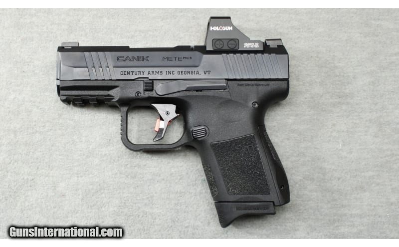 Description: CANiK METE MC9 chambered in 9mm Luger. This is a semi-automatic, striker-fired pistol that features an integrated safety and comes standard with a smooth trigger take-up, crisp break, and short reset. It was designed with concealed carry comfort in mind. The white dot front sight contrasts with the blacked out rear sight to allow for quicker sight alignment and target acquisition. It includes a Holsum 407K X2 Red Dot, the original box, and 2 mags. 9mm Luger SOLD Metal Condition: Excellent Bore Condition: Bright Barrels: 3 Inches Triggers: Factory Weight: 1 lb 6 ozs Sights: The white dot front sight contrasts with the blacked out rear sight to allow for quicker sight alignment and target acquisition. It includes a Holsum 407K X2 Red Dot Item Location: La Vista, NE |