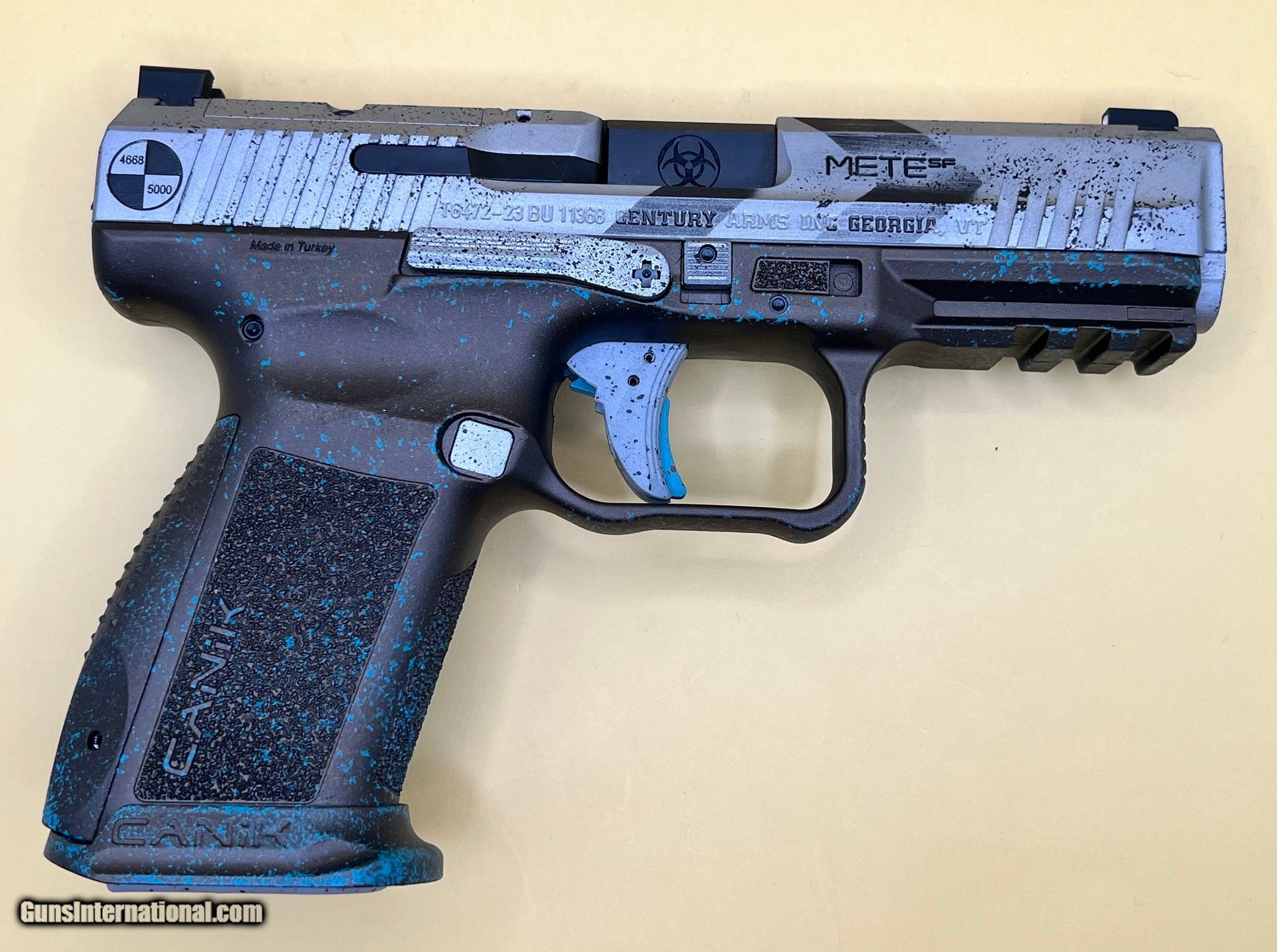 Description: Guns Listing ID: 403686 CANIK, Signature Series, METE SF, Semi-automatic, Polymer Frame, Striker Fired Pistol, Compact, 9MM, 4.19\" Barrel, Cerakote Finish, Apocalypse, Optic Ready Slide, Flared Magwell, 2 Magazines, 15 Rounds, Includes Matching Serial Number Knife and Lighter, Hard Case, Magazine E-Z Loader, Extra Backstrap, Two Optic Bases, Reversible IWB/OWB Holster, Canik Punch and Toolkit, Cleaning Kit SOLD Manufacturer: CANIK Model: METE SF SIGNATURE SERIES Caliber Info: 9MM LUGER (9X19 PARA) Condition: Used - Non-Certified Barrels: 4.19 BARREL Action: SEMI AUTOMATIC Finish: CAMO Weight: not specified |