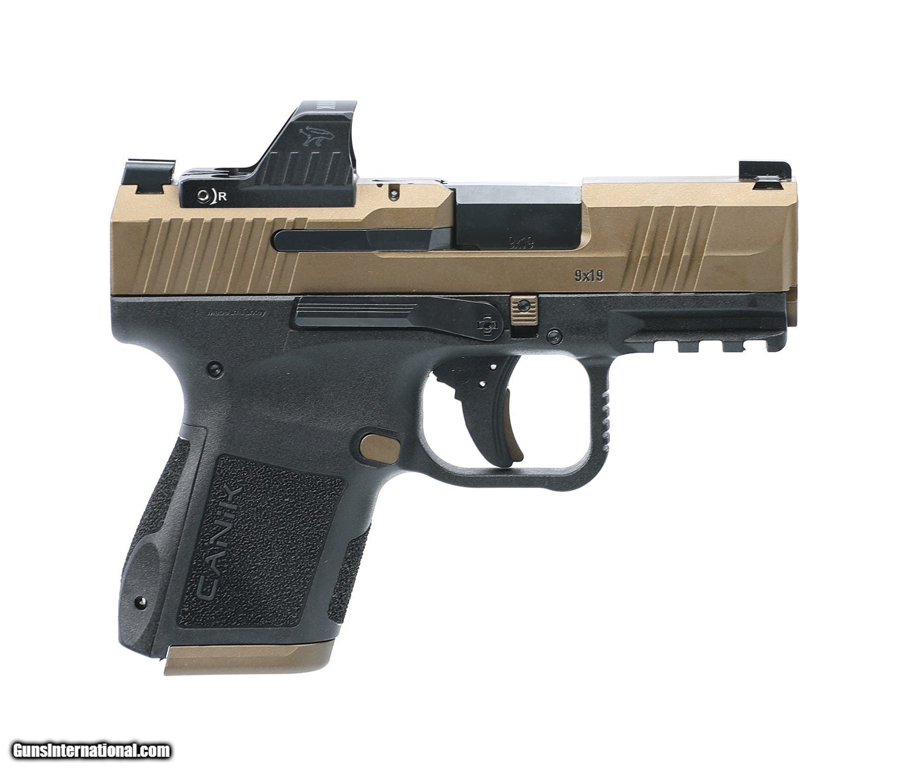 Description: Guns Listing ID: 1323987 This firearm is Used and in good condition. Comes with Factory box, 2 magazines, Optic and holster. MANUFACTURER: CANIK FAMILY: METE Series MODEL: METE SFT TYPE: Semi-Auto Pistol ACTION: Striker Fired CALIBER/GAUGE: 9mm FINISH: Bronze Cerakote FINISH TYPE: Applied Finish STOCK/GRIPS: Black Polymer BARREL: 3.18\" OVERALL LENGTH: 7.5\" CAPACITY: 15 + 1 # OF MAGAZINES: 2 MAG DESCRIPTION: 1-12 rd. and 1-15 rd. SIGHTS: 3-Dot White Sights SIGHT TYPE: Fixed Sights OPTICS READY CUT WEIGHT: 21.2 oz. ADDL INFO: Optics Ready Slide ADDL INFO: 3-Backstrap Options ADDL INFO: Undercut Trigger Guard MFG MODEL NO: HG7620BV-N UPC: 787450889668 SOLD Manufacturer: CANIK Model: METE SFT Caliber Info: 9MM LUGER (9X19 PARA) Condition: Used - Non-Certified Barrels: 3.18 BARREL Finish: BURNT BRONZE/BLACK |
