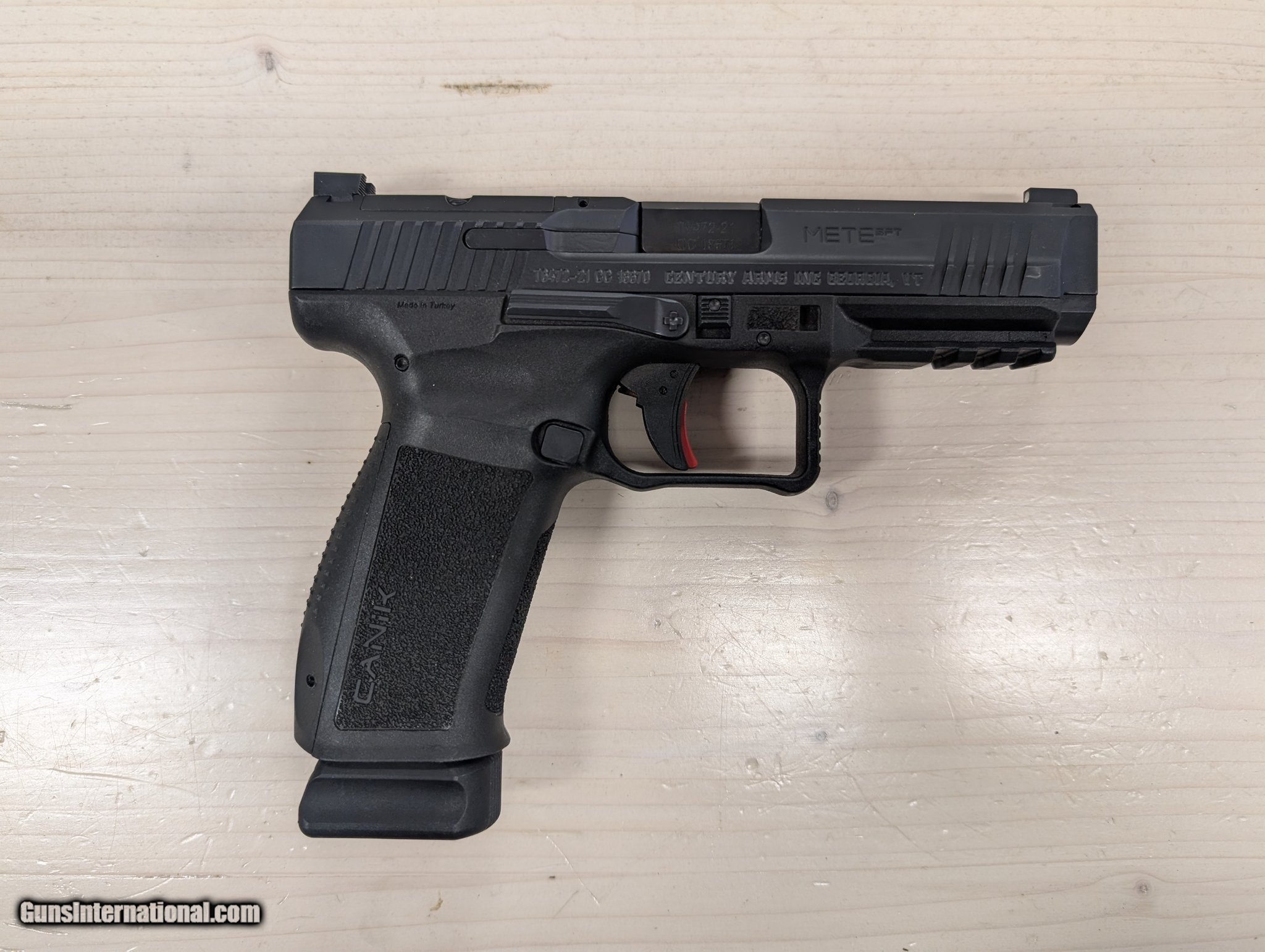Description: Guns Listing ID: 477819 The Canik brand of firearms is proud to unveil the latest innovation in pistols with the Mete series of handguns. The Mete name pays homage to a legendary Turkish general who is considered by many to be one of the fiercest warriors of all time. This line of pistols undoubtedly lives up to its namesake. Building off of the TP series success, the evolution of this line is based on consumer and engineering suggestions that were found to not only be desired enhancements but also functional improvements. The METE SFT is the culmination of years of tireless testing and engineering resulting in a truly impressive end result. Includes is a hard case, two mags, speed loader, IWB/OWB holster, extra backstrap, tool kit & punch, cleaning kits, two optic plates and gun lock. Canik METE SFT Specifications Brand: Canik Category: Pistols Series: SFT Caliber: 9mm Luger Model: Mete Capacity: 20+1 Action: Striker Fire Frame Finish: Black OAL: 7.56\" Frame Material: Polymer Hand: Right Sight Style: Contrast Slide Finish: Black Nitride Slide Material: Steel Slide Description: Serrated Black Nitride Steel Magazine Type: OEM Grips: Black Interchangeable Backstrap Sight Configuration: 3-Dot Includes: 2 Magazines / Polymer Holster Safety: Loaded Chamber Indicator Barrel Description: Match Grade Barrel Length: 4.46\" Max Capacity: 20 Weight: 1.74 lbs Frame Description: Black Polymer w / Picatinny Rail SOLD Manufacturer: CANIK Model: METE SFT Caliber Info: 9MM LUGER (9X19 PARA) Condition: Used - Non-Certified Barrels: 4.46 BARREL Action: STRIKER Finish: BLACK Weight: 1.8 LBS. |