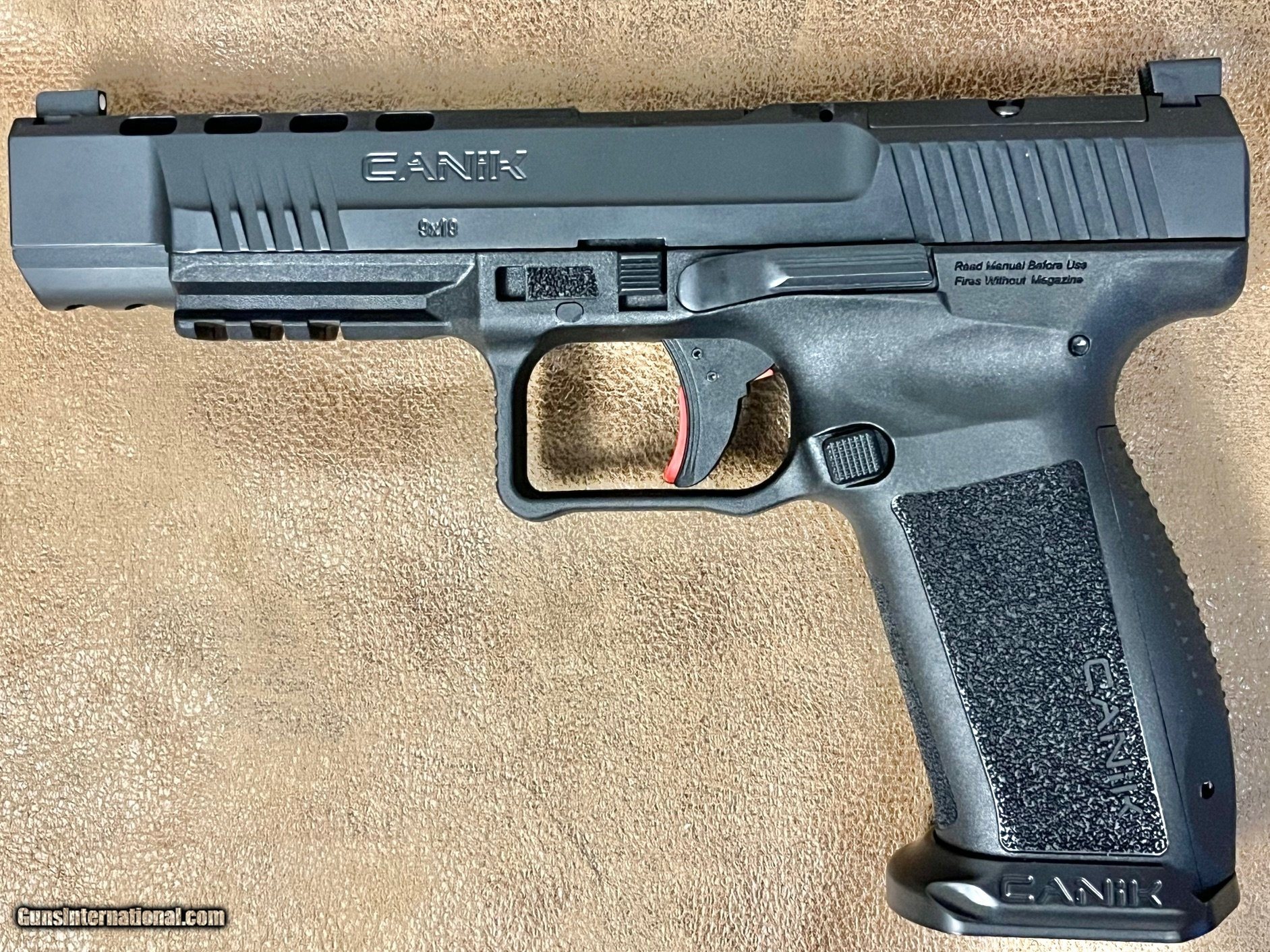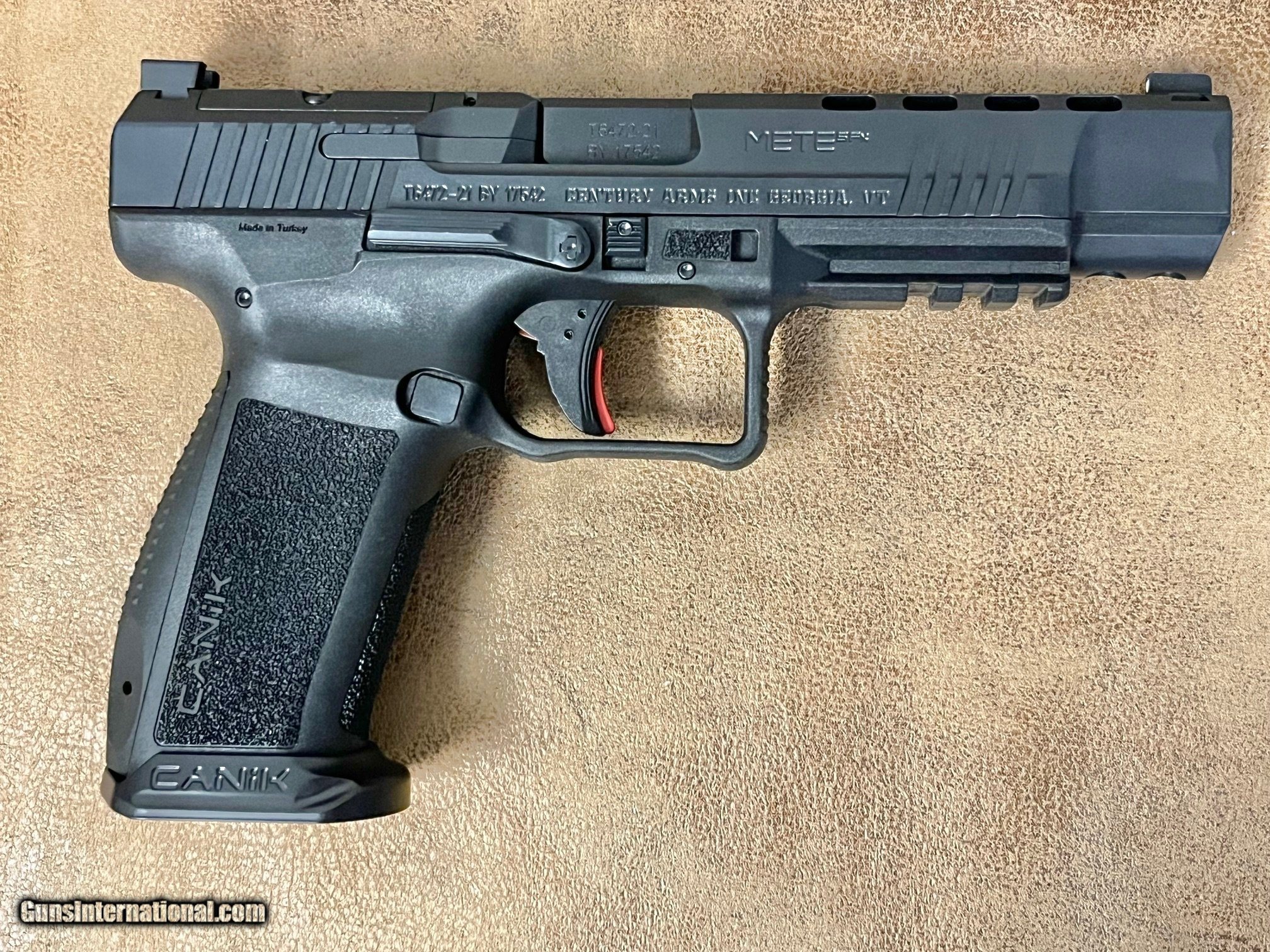 Description: Guns Listing ID: 1278585 CANIK, TP9, METE SFx, Striker Fired, Semi-automatic, Polymer Frame Pistol, Full Size, 9MM, 5.2\" Barrel, Black, 3 Dot White Sights, Flared Magwell, Holster Fit and Lock, Optic Ready, (2)18-Round Magazines, original box SOLD Manufacturer: CANIK Model: METE SFX Caliber Info: 9MM LUGER (9X19 PARA) Condition: Used - Non-Certified Barrels: 5.2 BARREL Finish: BLACK NITRIDE |