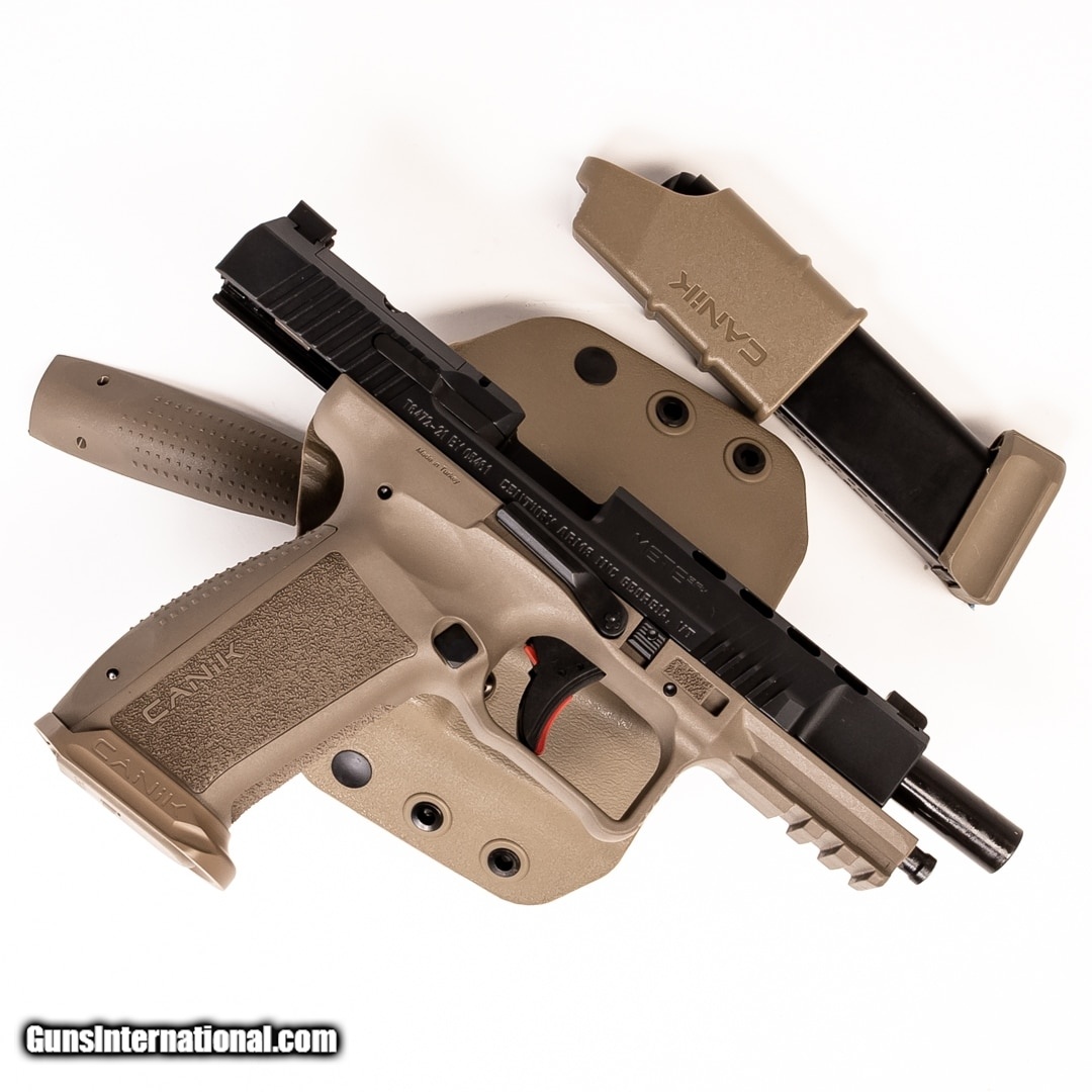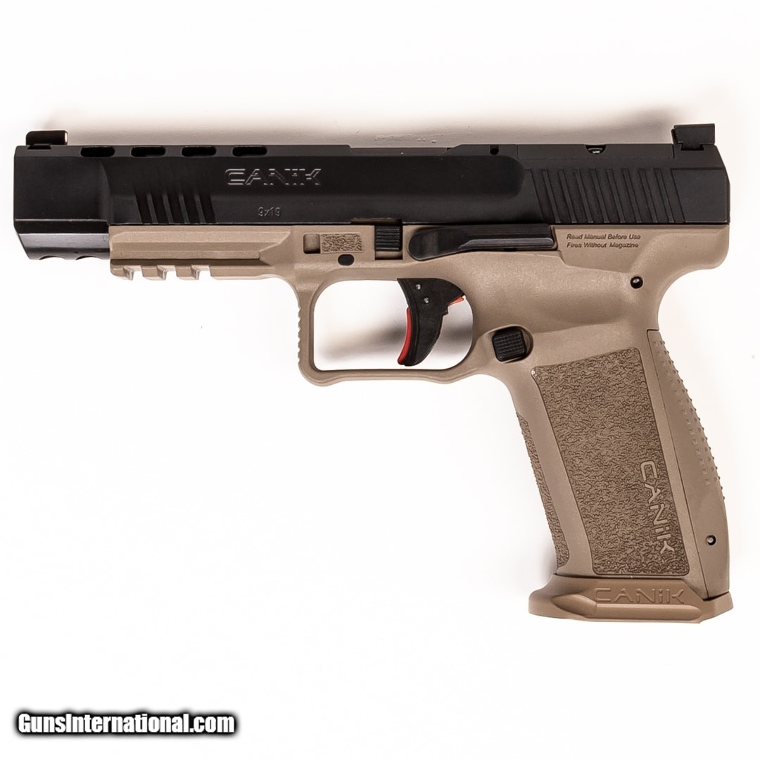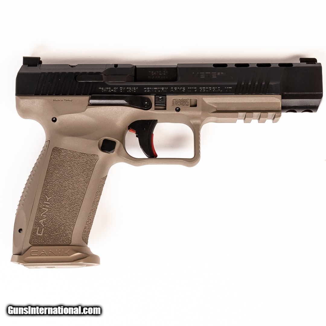 Description: Guns Listing ID: 458072 For sale is a METE SFX by Canik. Building off the success of the TP series, the evolution of the METE line is based on consumer and engineering feedback concerning desired enhancements and functional improvements. The METE series is the culmination of years of tireless testing and engineering, resulting in a truly impressive pistol! This METE SFX includes the original case, manual, paperwork, two 18-round magazines, two sizes of backstraps, loader, optic plates, miniature gun tool, and a right-handed OWB holster. SOLD Manufacturer: CANIK Model: METE SFX Caliber Info: 9MM LUGER Condition: Used - Certified Barrels: 4.5 BARREL Finish: FDE/BLACK |