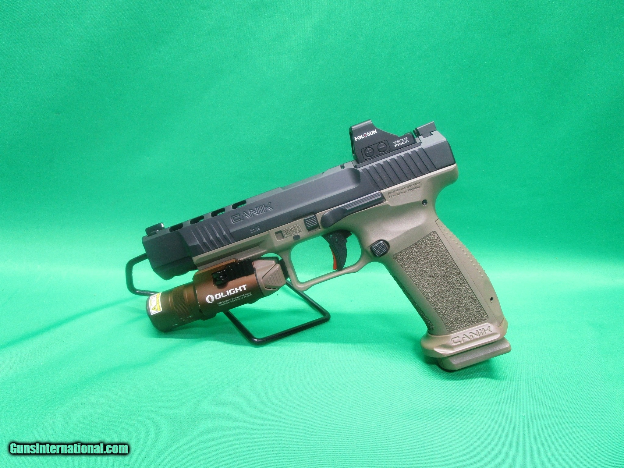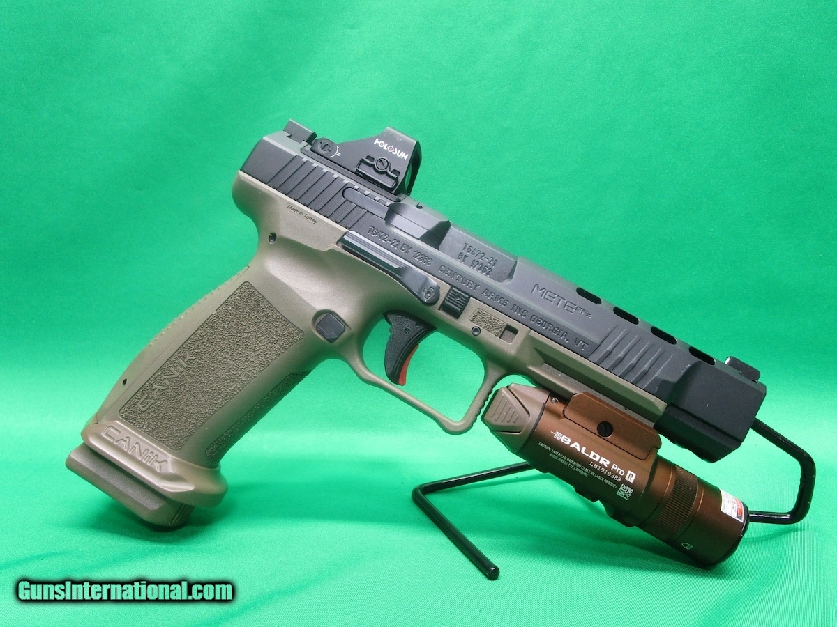 Description: Guns Listing ID: 519241 We have a used Canik Mete SFX semi-automatic pistol for sale. This is chambered in 9mm with a 5\" barrel. It comes as shown in pictures with one 21 round magazines, Holosun red dot, and Olight. This is in Very Good Used Condition. Overall we would grade at approx 98%. Check out the pictures and feel free to call or email with any questions. SOLD Manufacturer: CANIK Model: Mete SFx Caliber Info: 9MM Condition: Used - Non-Certified Barrels: 5 BARREL Finish: TAN |