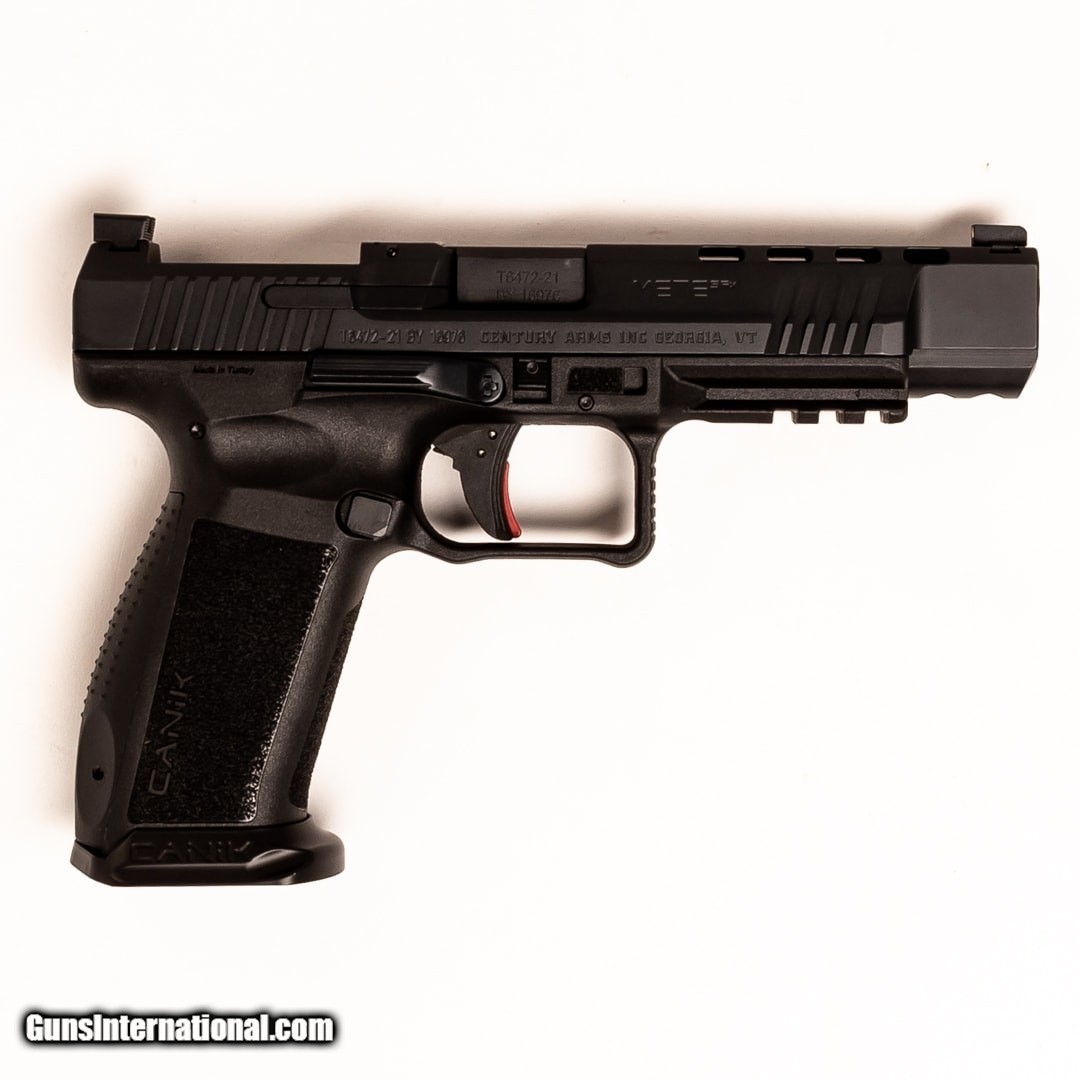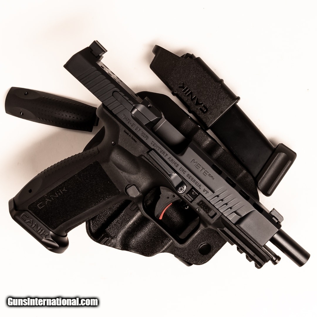 Description: Guns Listing ID: 628756 For sale is a METE SFX by Canik. Building off the success of the TP series, the evolution of the METE line is based on consumer and engineering feedback concerning desired enhancements and functional improvements. The METE series is the culmination of years of tireless testing and engineering, resulting in a truly impressive pistol! This METE SFX includes the original case, manual, two 18-round magazines, and a right-handed OWB holster. SOLD Manufacturer: CANIK Model: METE SFX Caliber Info: 9MM LUGER (9X19 PARA) Condition: Used - Certified Barrels: 5.20 barrel Finish: BLACK |