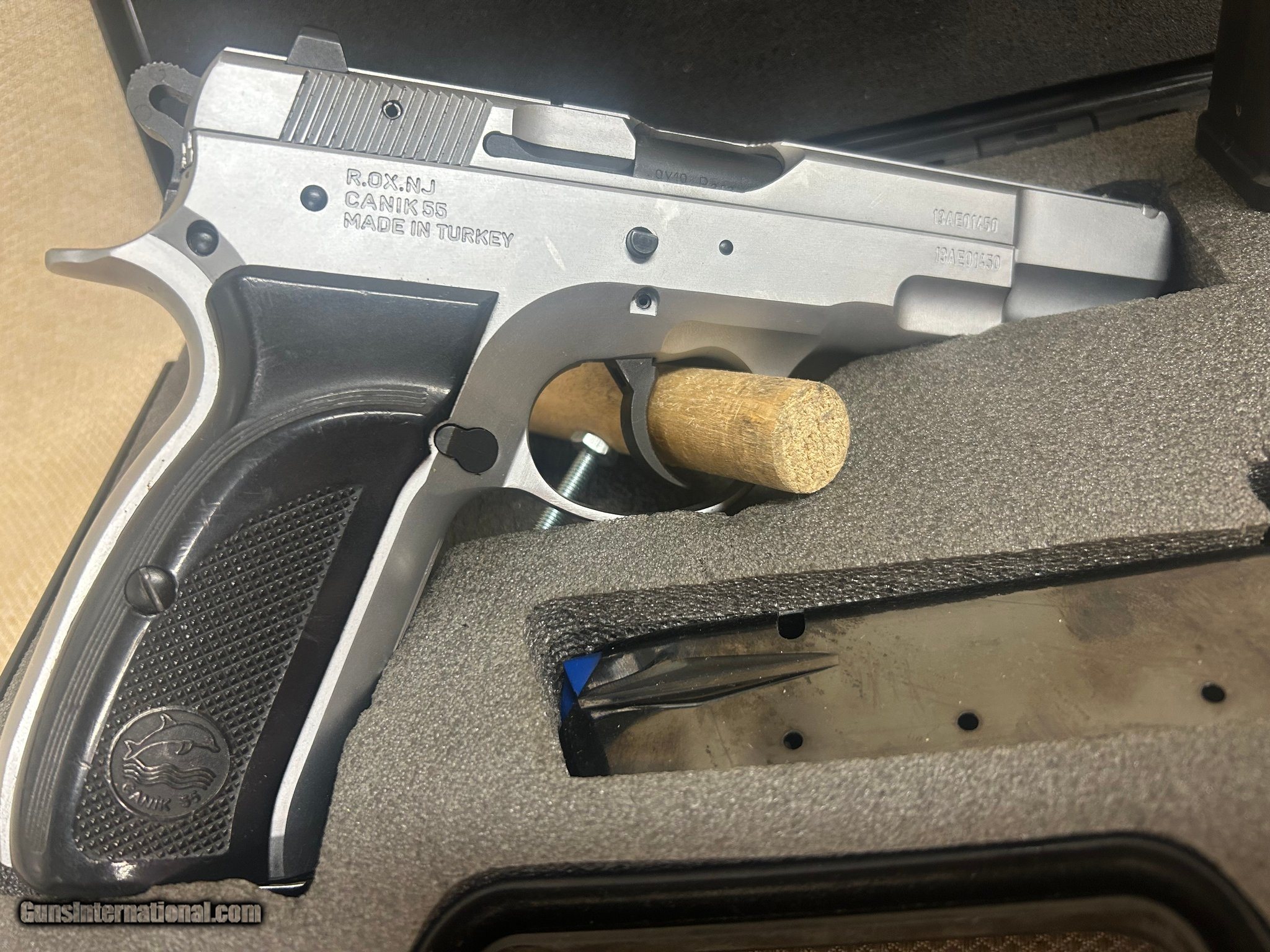 Description: Guns Listing ID: 1335453 Comes with factory hard case, paperwork and shell casing. Also comes with (5) total magazines and speed loader. See photos for condition of firearm. SOLD Manufacturer: CANIK Model: S120 Caliber Info: 9MM LUGER (9X19 PARA) Condition: Used - Non-Certified Barrels: 4.72 BARREL Finish: SILVER AND BLACK |