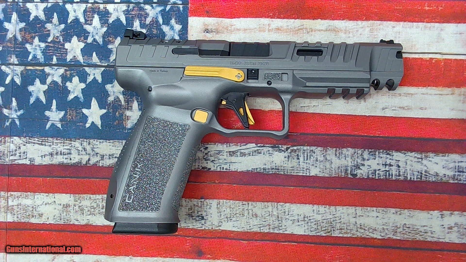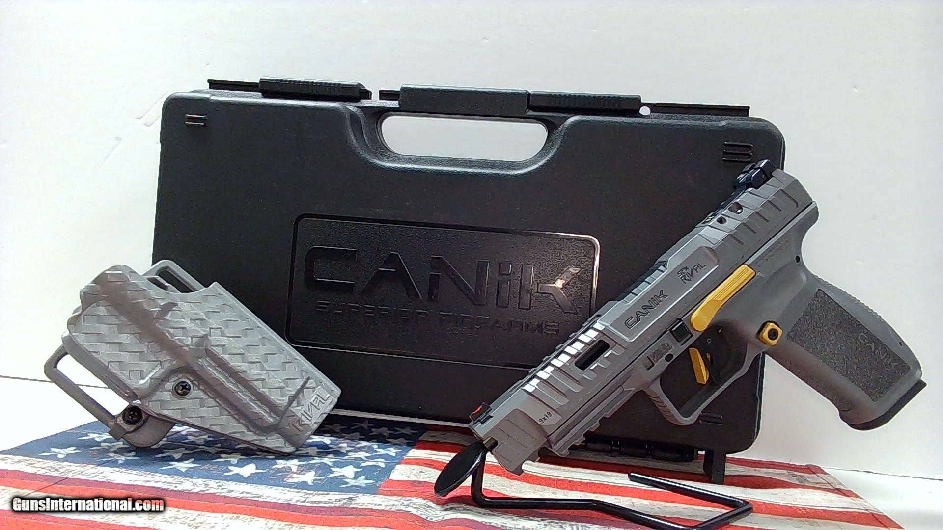 Description: Guns Listing ID: 538617 Pre-owned Canik SFX Rival in excellent condition. This firearm is a titanium grey with gold accents and is chambered in 9mm. Includes Canik OWB holster and a non-original Canik hard case. The Canik SFX Rival delivers exceptional performance and accuracy in an ergonomic, durable, and reliable handgun design. It comes chambered in 9mm with a 5-inch barrel. Features include a fiber optic front sight, an adjustable rear sight, a flared magwell, and one 18 round magazine. They say a picture is worth a thousand words. These photos are the best statement of condition; please review them carefully before purchasing. SOLD Manufacturer: CANIK Model: SFX RIVAL Caliber Info: 9MM LUGER (9x19 PARA) Condition: Used - Non-Certified Barrels: 5 BARREL Action: SEMI AUTOMATIC Finish: TITANIUM GREY |