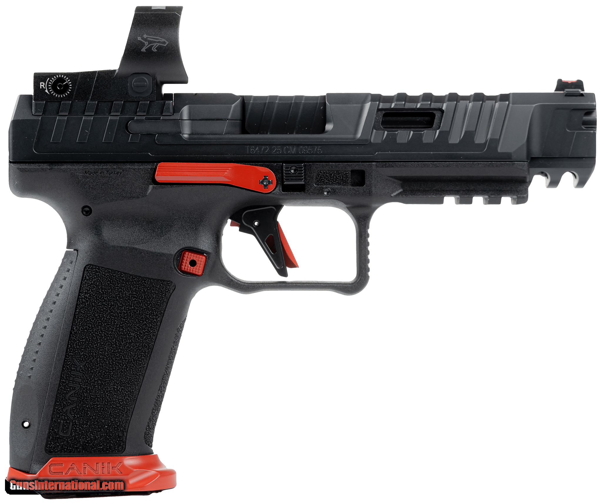 Description: Guns Listing ID: 547326 Canik SFx Rival Full Size Frame 9mm Luger 18+1 5\" Black Steel Barrel, Black Steel Optic Ready/Ported/Serrated Slide, Black w/Red Accents Polymer Frame w/Picatinny Rail, Interchangeable Backstrap Grip With its specifications the Canik SFx Rival can compete in IDPA, IPSC and USPSA without restrictions. The SFx Rival features adjustable fiber optic sights; a lightened 90 degree diamond cut aluminum flat trigger; reversible magazine release; ambidextrous slide release; aggressively serrated and ported slide; 1913 Picatinny rail on frame; external mag-well; interchangeable backstraps; double undercut trigger guard; ergonomically redesigned beavertail; aggressive grip texturing and a completely modular setup. Includes two magazines, magazine E-Z Loader, gun lock, three backstraps, four optic plates, Canik Punch/Took kit, cleaning kit, two aluminum mag base plates, additional fiber optic, three mag release extensions and manual. Manufacturer: CANIK Model: SFX RIVAL Caliber Info: 9MM LUGER (9x19 PARA) Condition: new Barrels: 5" BARREL Action: SEMI AUTOMATIC Finish: BLACK AND RED Weight: 1.8 LBS. Price: $726.99 Contact Seller |