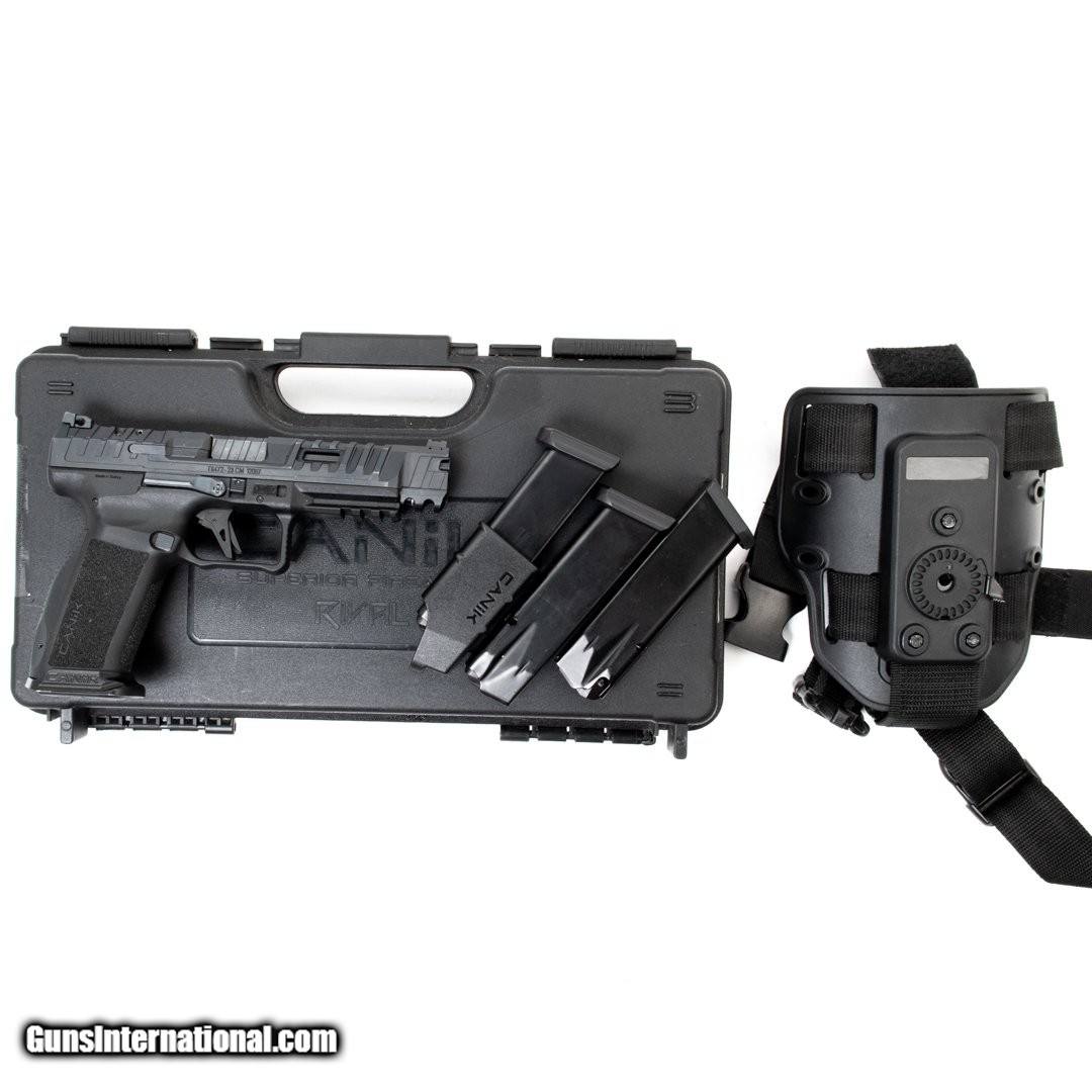 Description: Guns Listing ID: 555470 This optic-ready Canik SFX Rival features a fiber optic front sight. Purchase includes the original case, manual, four 18-round magazines, backstraps, magwell, Canik tools, optic plates, and a Level 2 drop leg duty holster with hip attachment. Get the best bang for your buck when you get a Certified Used Firearm . When you see the Certified Used stamp on any of our firearms, you can be confident that you‚re getting exactly what you want – a gun only in very good to excellent condition and held to the highest quality standard. All Certified Used Guns come with a ‚no questions asked‚ return policy . SOLD Manufacturer: CANIK Model: SFX RIVAL Caliber Info: 9MM LUGER (9X19 PARA) Condition: Used - Certified Barrels: 5.00" BARREL Action: SEMI AUTOMATIC Finish: black Weight: 1.4 |