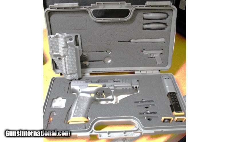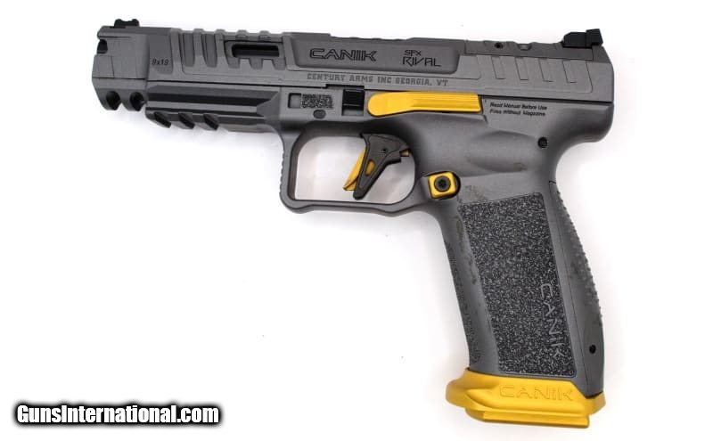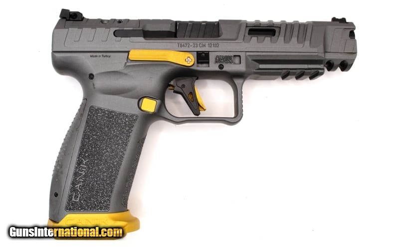 Description: This Canik Model SFX Rival is a right hand semi-auto pistol in 9mm Cal. It has a 5-inch barrel with a front and rear serrated slide. A red high visibility front sight and an adjustable notch rear sight. Textured grip. It has a lower accessory rail, loaded chamber indicator and flared magazine well. 9mm Luger SOLD Chambers: 9MM LUGER Metal Condition: EXCELLENT Bore Condition: CLEAN & BRIGHT Barrels: 5 Triggers: Crisp factory trigger Weight: 1 Lb 12 Oz Sights: Red high visibility front. Adjustable notch rear Item Location: Grandville, MI |