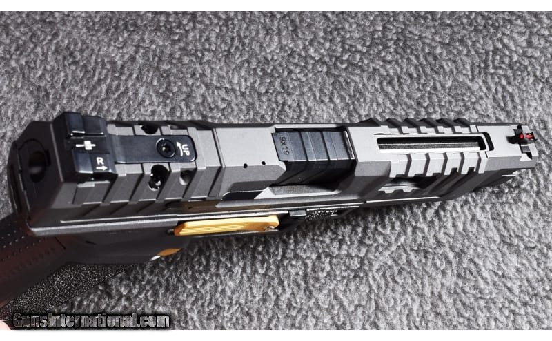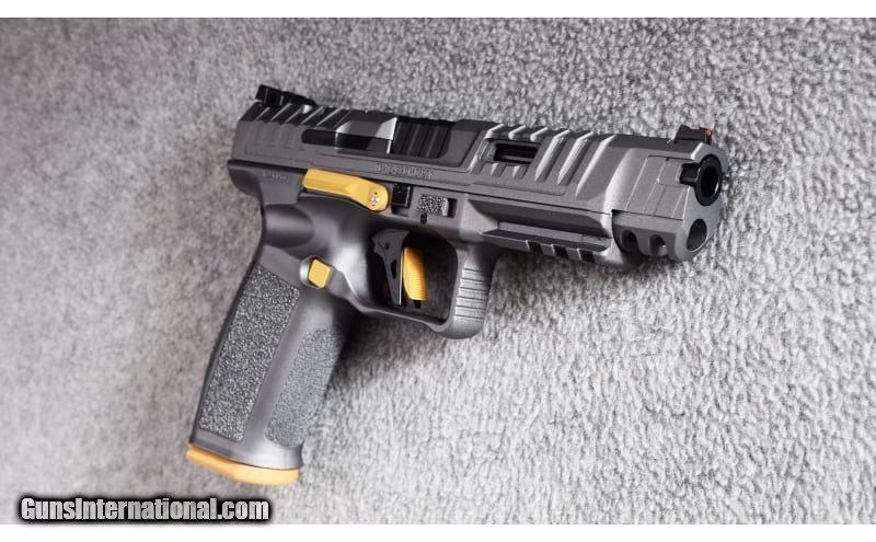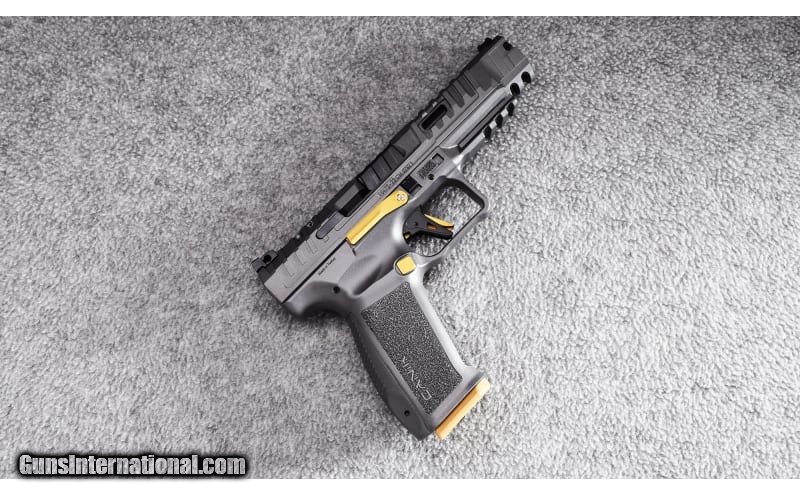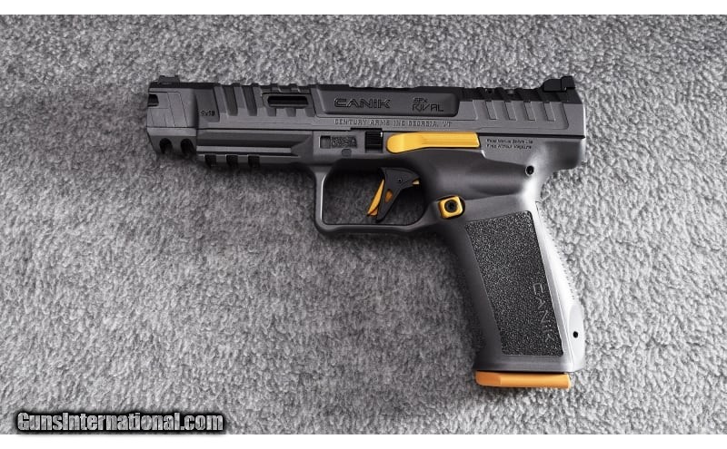 Description: This Canik SFX Rival in 9mm Luger remains in excellent overall condition. It features a fiber optic front sight. The slide and frame are colored grey with a gold ambi slide lock lever. This pistol will ship in the original box with all the Canik accessories to include a holster, two magazines, adjustable backstraps, optics plates and cleaning utensils. A very nice competition pistol!! 9mm Luger SOLD Metal Condition: Excellent Bore Condition: Excellent Barrels: 5 Triggers: Factory Butt Pad: Textured Grey Polymer Grip Weight: 28 oz Sights: Fiber Optic Red Front - Serrated U Notch Rear Adjustable Item Location: Wheeling |