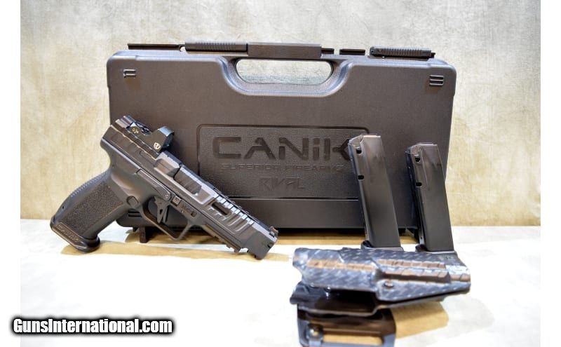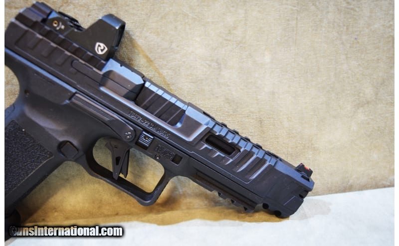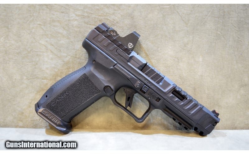 Description: Canik model SFX Rival The Dark Side with MOS is semi-auto pistol chambered in 9mm Luger in excellent condition. The Canik has ported slide cuts and a 5" barrel. The Canik comes with the Original manufacture box, 2(18) round magazines, holster, Riton Red DOT, extra plates, cleaning kit, Canik tools, Aluminum Magazine Base Plates, Magazine Loader, External Mag-Well, (4) Optic Plates for RIVAL, (3) Grip Back Straps, (3) Magazine Release Extensions, Gun Lock & Manual, and allen key. 9mm Luger SOLD Metal Condition: Excellent Bore Condition: Bright and Shiny Barrels: 5 inch Weight: 2 lbs Sights: Riton Red Dot Optic and Red Fiber Optic Dot Front Sight Item Location: Chesterfield, MI |