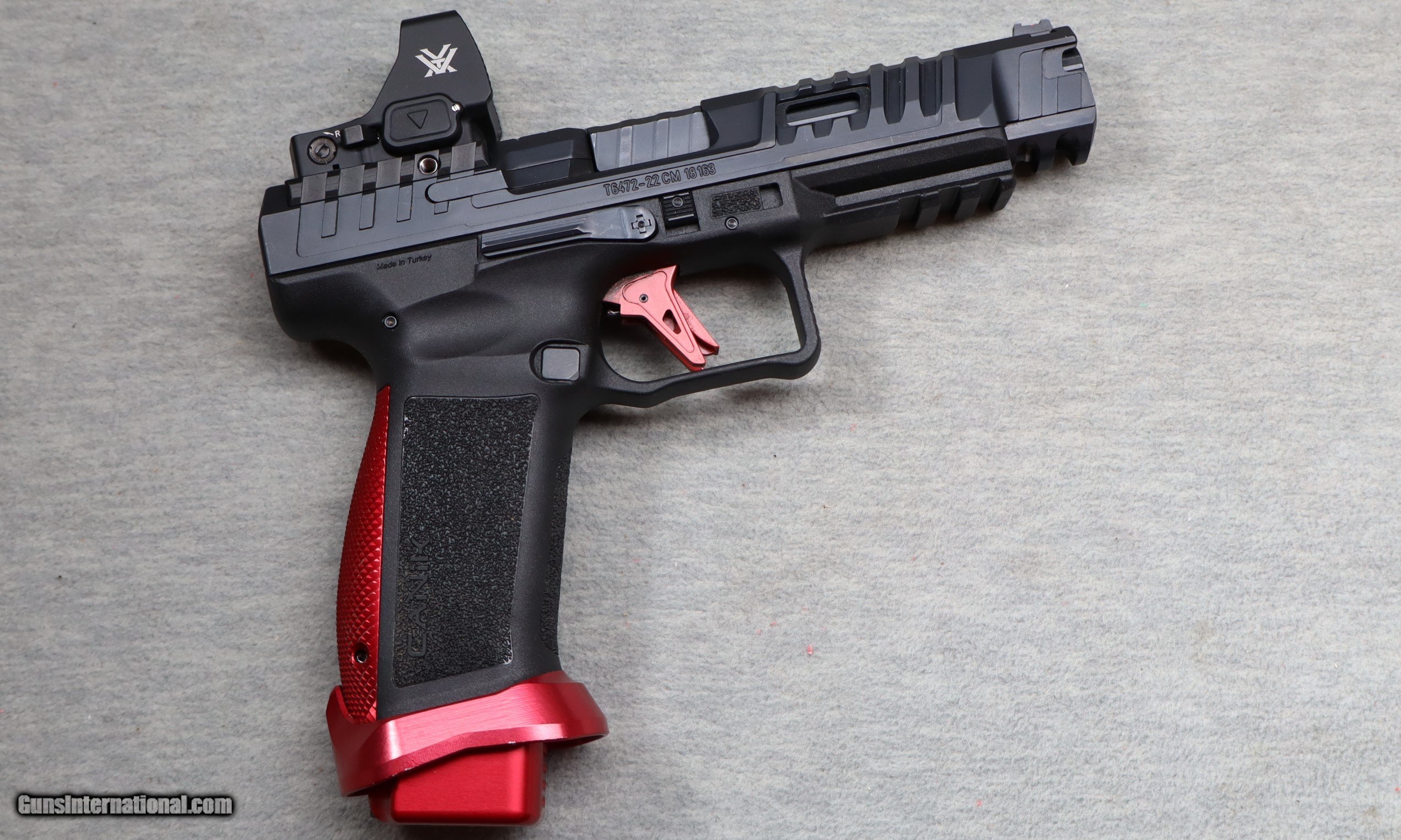 Description: Excellent condition, light wear, few small scratches, comes with four mags and case. Full size 9mm semi auto pistol, 5" barrel, factory black finish, striker trigger, Vortext Defender XL red dot, accessory rail for a light or laser, heavy backstrap, magwell and nicely textured grip surfaces. 9mm Luger SOLD Chambers: Semi auto Metal Condition: Excellent Bore Condition: Bright Barrels: 5 Triggers: Striker fired Fore End: Rail for accessory mounting Butt Pad: Polymer frame with integral grip Sights: Vortext Defender XL red dot Item Location: La Vista, NE |