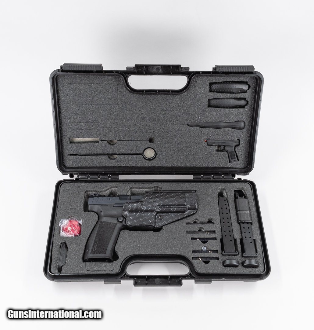 Description: Guns Listing ID: 1356990 Manufacturer: Canik Model: SFX Rival Condition: Excellent Caliber: 9x19mm Action: Semi-Auto/Striker Barrel Length: 5\" Overall Length: 18+1 Capacity: 8.1\" Features: \"Dark Side\" black finish, adjustable FO sights, optics ready (RMR), ported slide, 1913 under rail, chamber indicator. Notes: Mag release is on the right side, can be swapped to the left side. Inventory: Firearm, (2) 18-rd magazines, original case, extra back straps, Canik OWB polymer holster, mag loader, flared magwell (not installed), manual. UPC: 787450774643 SKU: HG6815-N • Please be aware that we have not test fired this gun. Unless otherwise stated, expect this firearm to fire and function safely. SOLD Manufacturer: CANIK Model: SFX RIVAL OR Caliber Info: 9MM LUGER (9X19 PARA) Condition: Used - Non-Certified Barrels: 5 BARREL Finish: BLACK |