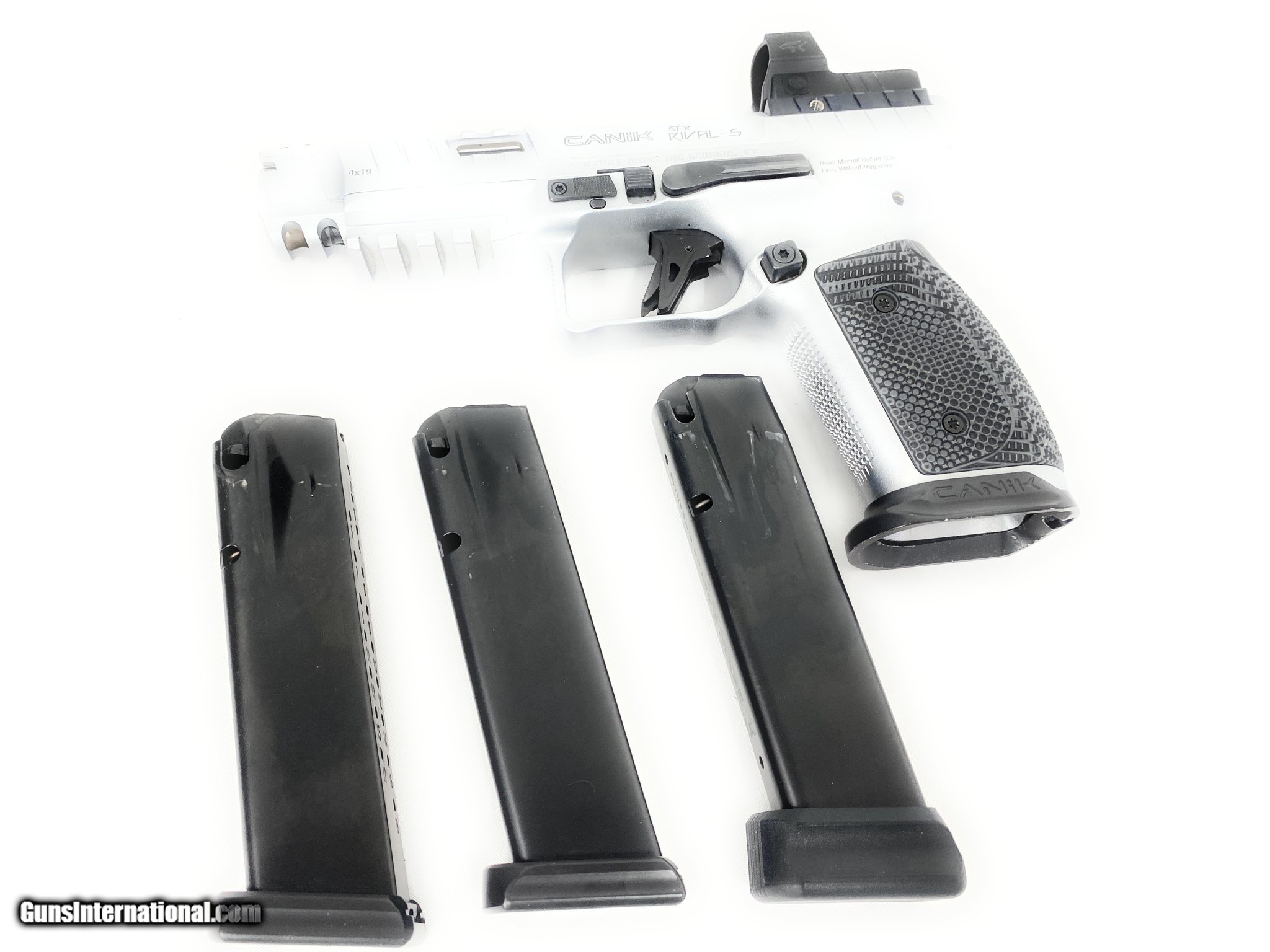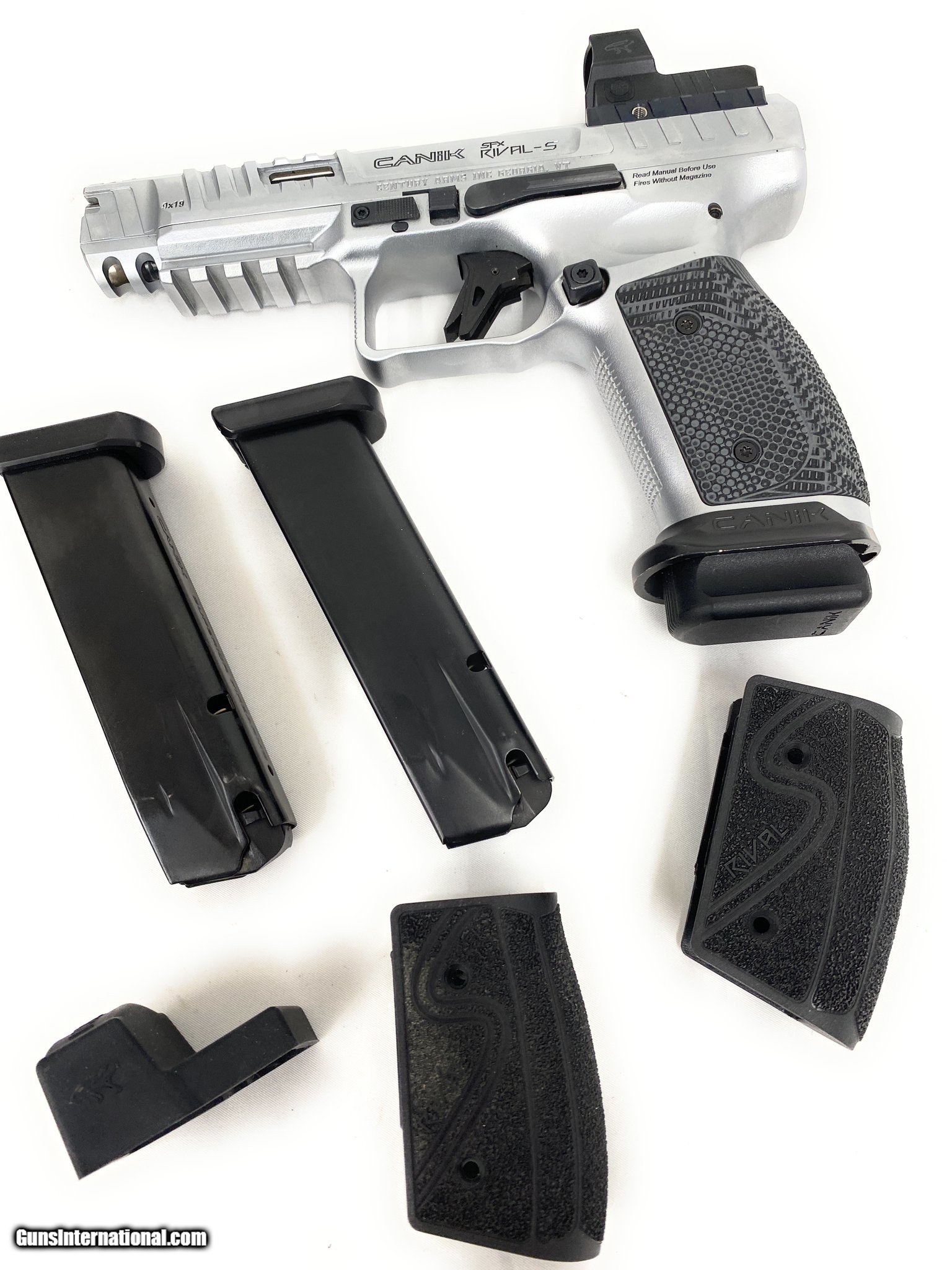 Description: Guns Listing ID: 472801 Like new. Including 3 18 rd magazines. Mine does NOT INCLUDE ANY OF THE FOLLOWING :\" 5 optic plates,, 2 aluminum base plates, a speed loader, cleaning kit, and a tool and punch set.\" SKU-24120014 SOLD Manufacturer: CANIK Model: RIVAL-S Caliber Info: 9MM LUGER (9X19 PARA) Condition: Used - Non-Certified Barrels: 5 BARREL Action: SEMI AUTOMATIC Finish: CHROME Weight: 2.67 lbs. |