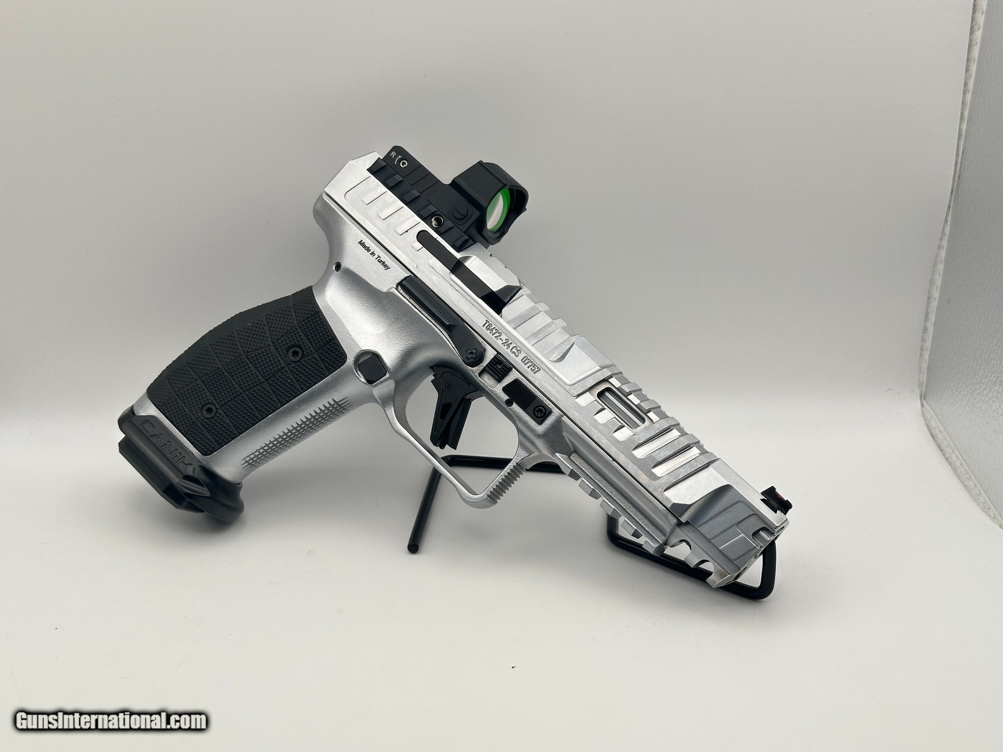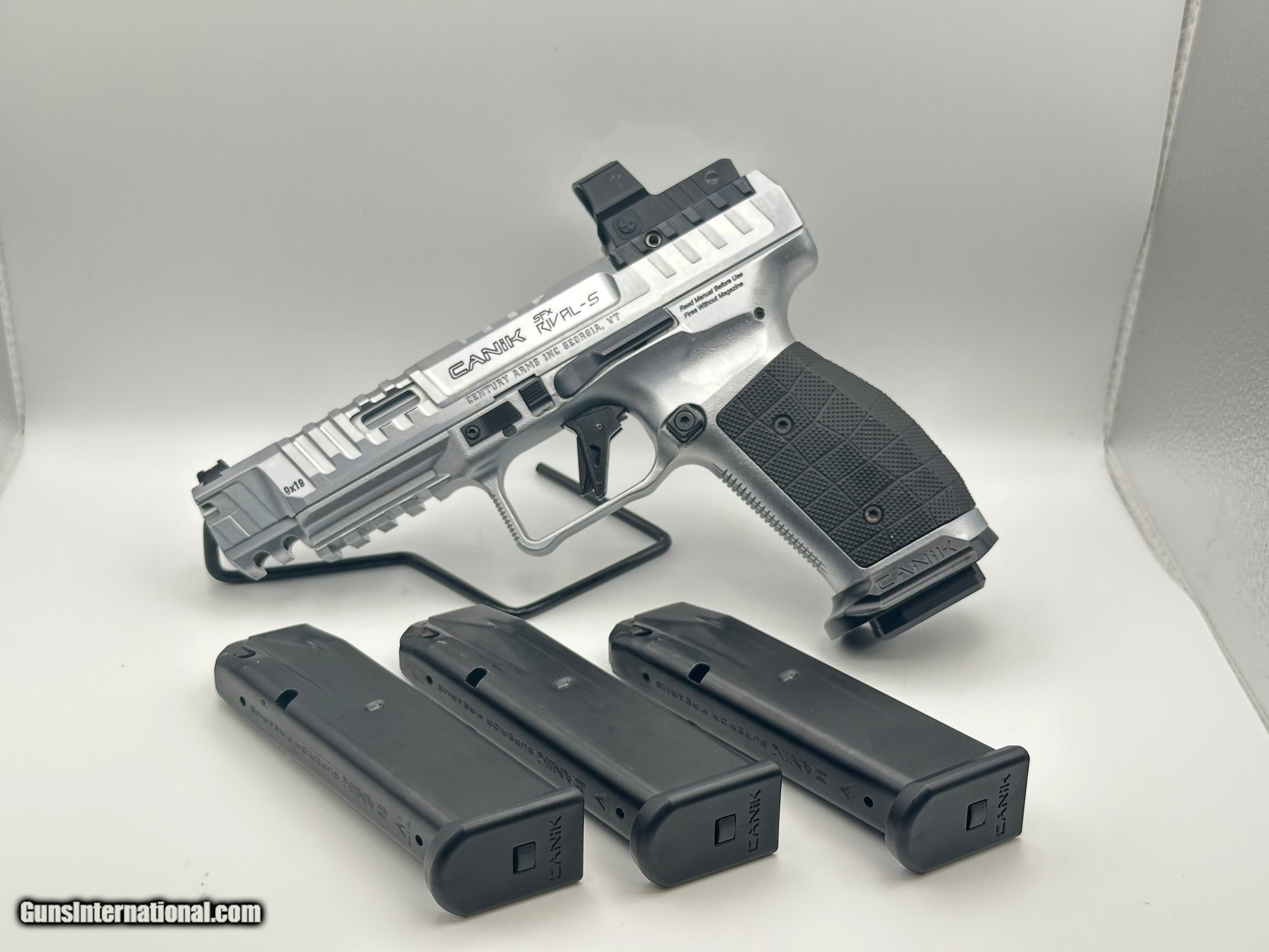 Description: Guns Listing ID: 544716 The Canik SFx Rival-S, often referred to as the Rival-S, is a full-size, steel-framed, 9mm Luger pistol designed primarily for competition shooting. It‚s an evolution of the Canik SFx Rival, distinguished by its heavier, all-steel frame which enhances recoil management and provides a more stable shooting platform. Comes with Lok grips cerakoted H-190 armor black, 4 magazines one with aftermarket baseplate and original packaging with Canik Optic installed SOLD Manufacturer: CANIK Model: SFX RIVAL-S Caliber Info: 9MM LUGER (9X19 PARA) Condition: Used - Non-Certified Barrels: 5 BARREL Action: SEMI AUTOMATIC Finish: CHROME Weight: 2.67 LBS. |