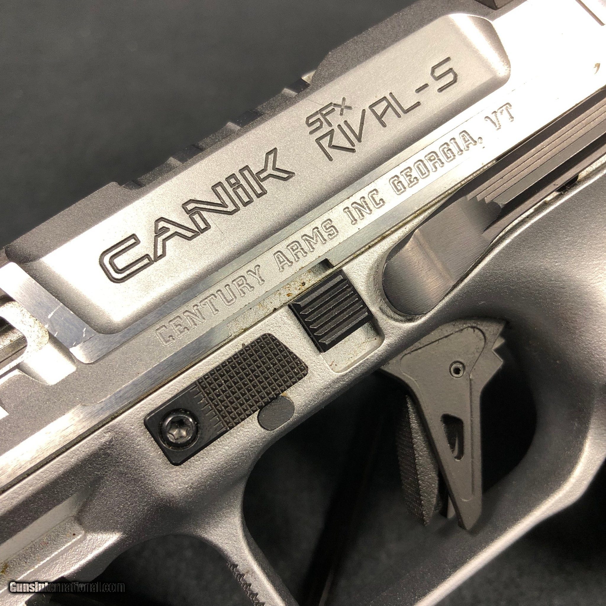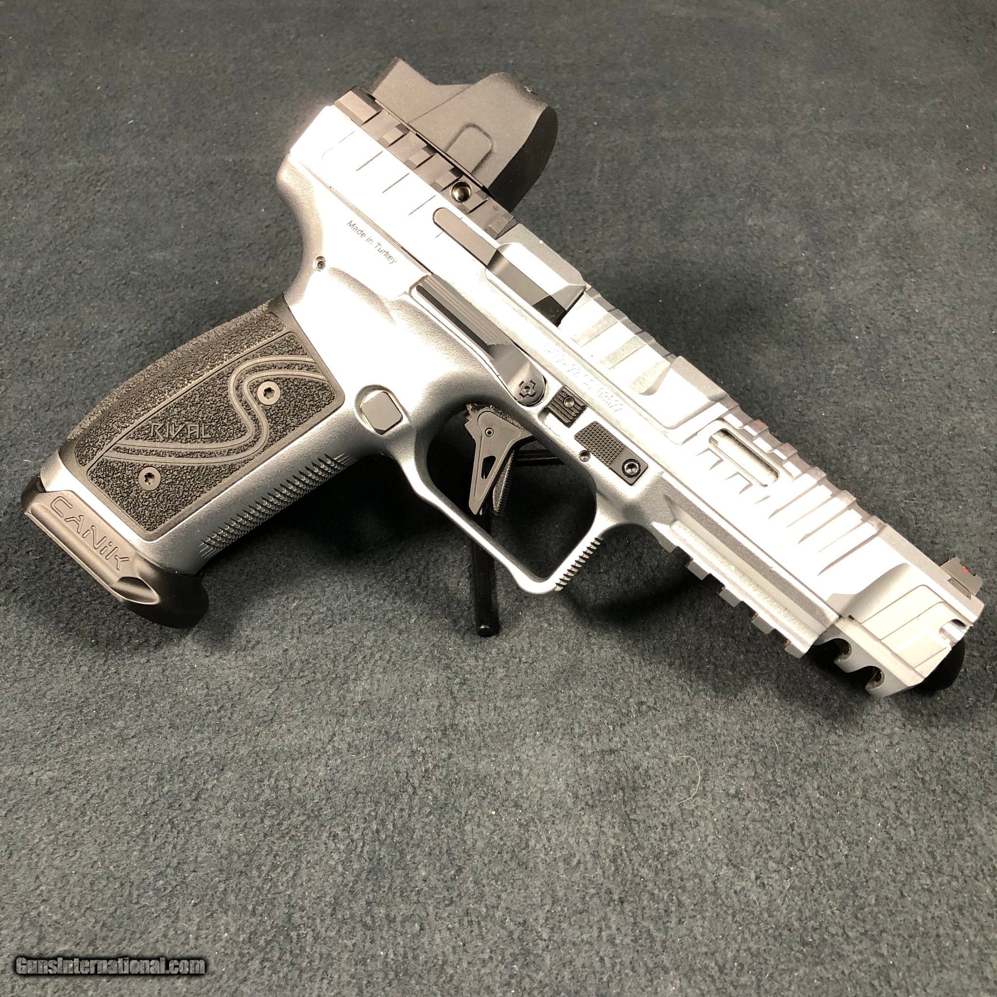 Description: Guns Listing ID: 608171 PISTOL: CANIK MODEL SFX RIVAL-S 9MM W/GOWUTAR HHC17R RED DOT SIGHT AND ONE 10RD MAGAZINE. Manufacturer: CANIK Model: SFX RIVAL-S Caliber Info: 9MM LUGER (9x19 PARA) Condition: Used - Non-Certified Barrels: 5" BARREL Action: SEMI AUTOMATIC Finish: chrome Price: $699.99 Contact Seller |