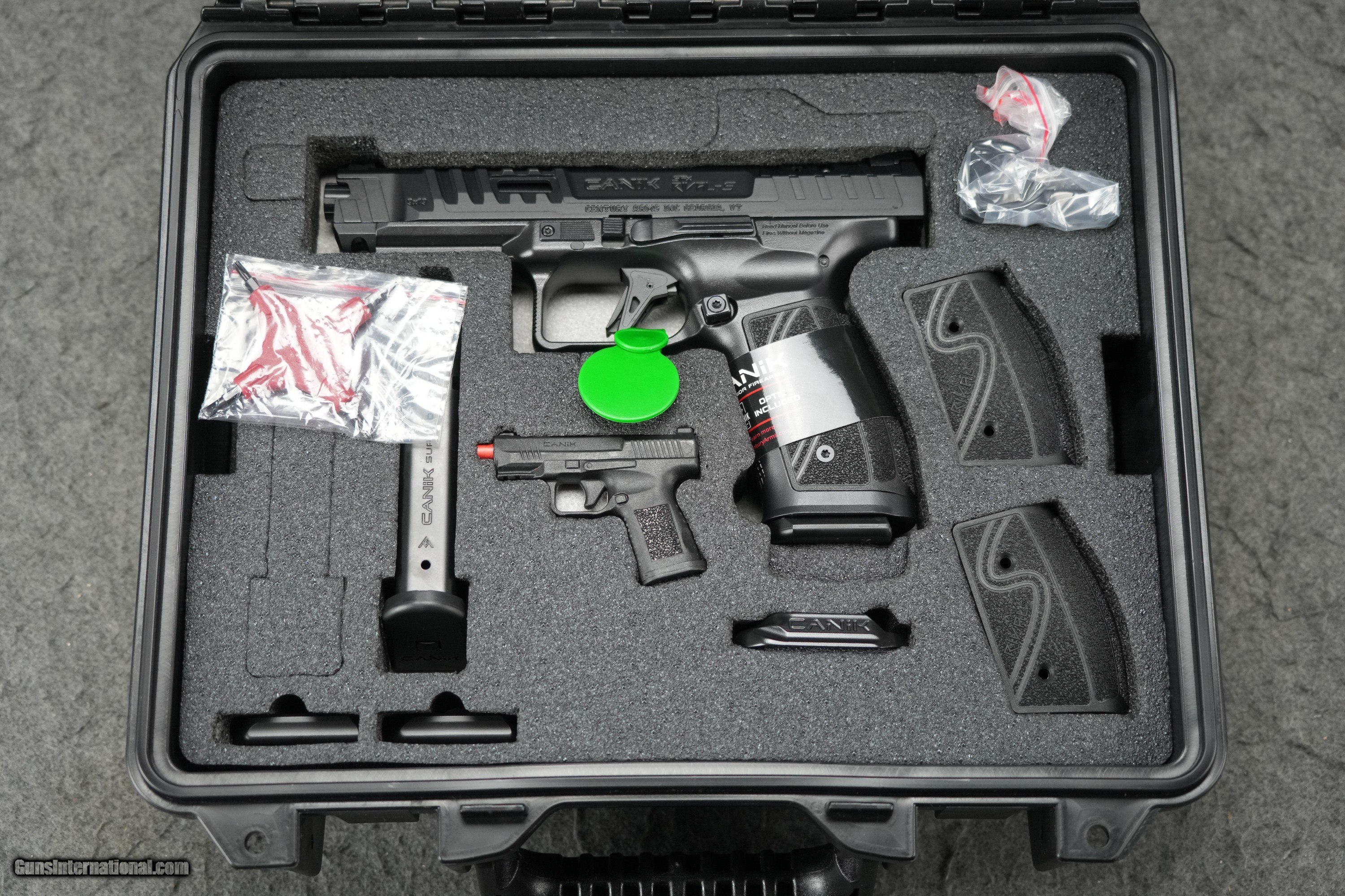 Description: The Canik SFx Rival-S is taking steel framed pistols to the next level! With a proven design in the award winning Canik SFx Rival and the weight needed to manage even more recoil, this platform is truly ready to beat even the fiercest of competitors, while doing it at a price point you simply can’t afford not to take advantage of! Available in black (SFx Rival-S Dark Side), this firearm is “forged for superiority!” (2) 18 Round Magazines (2) Aluminum Magazine Base Plates Magazine Loader External Mag-Well Custom Holster Canik Punch & Tool Kit Cleaning Kit (5) Optic Plates Additional Fiber Optic (3) Grip Back Straps (3) Magazine Release Extensions Gun Lock & Manual Water Resistant Tier 2 Travel Case MANUFACTURER: CANIK MODEL: SFx Rival-S Darkside ACTION: Striker Fired CALIBER: 9mm FINISH: Black FRAME: Steel Frame STOCK/GRIPS: Removable Grips GRIP TYPE: Synthetic BARREL: 5" OVERALL LENGTH: 8.1" CAPACITY: 18 + 1 # OF MAGAZINES: 2 MAG DESCRIPTION: 18rd. SIGHTS: FS: Fiber Optic|RS: Adj. Targ. SIGHT TYPE: Adjustable Sights OPTICS READY CUT MeCanik MO2 Optic Included!!! CASE: Water Resistant Hard Case ADDL INFO: Optics Plates Included ADDL INFO: Flared Mag-Well ADDL INFO: Flat Faced Trigger MFG MODEL NO: HG7607-N SOLD Handgun Caliber: 9x19mm Parabellum (9mm Luger, 9x19mm NATO) Manufacturer: Canik Model: SFX Rival-S Darkside Barrel Length: 5" Barrel Condition: BRAND NEW |