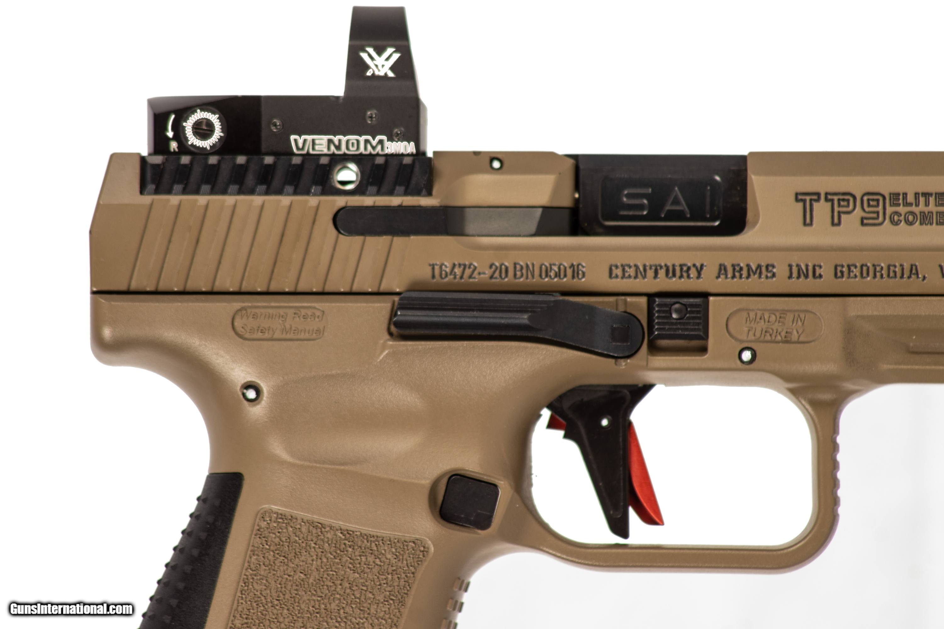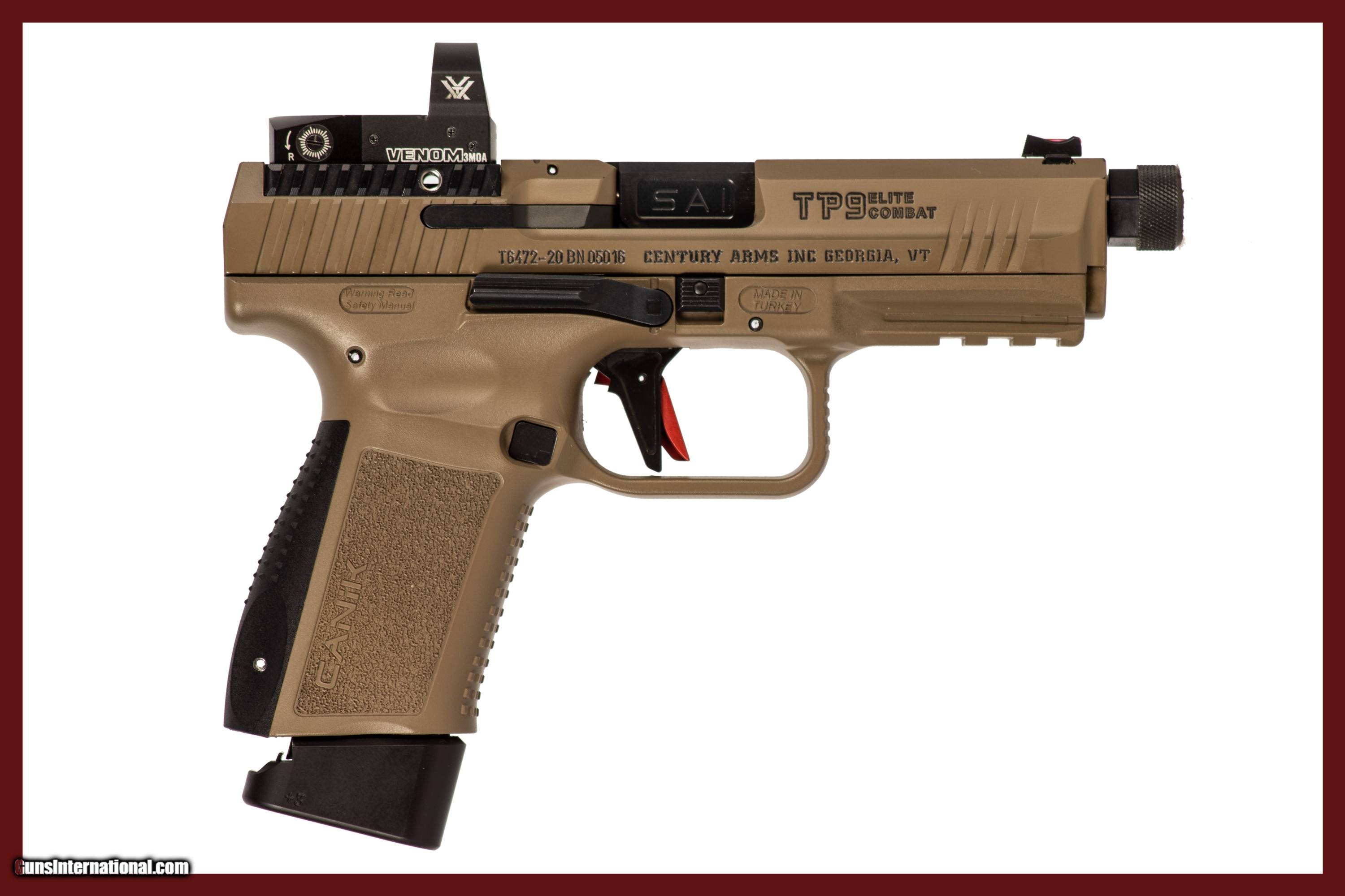 Description: Canik TP9 Elite Combat chambered in 9 mm with a 4 3/4 inch barrel and a bright & shiny bore. This firearm comes with a case 1 extra magazine Vortex Venom Red Dot and a holster. This firearm is in excellent condition and is covered by Dury's Lifetime Warranty.