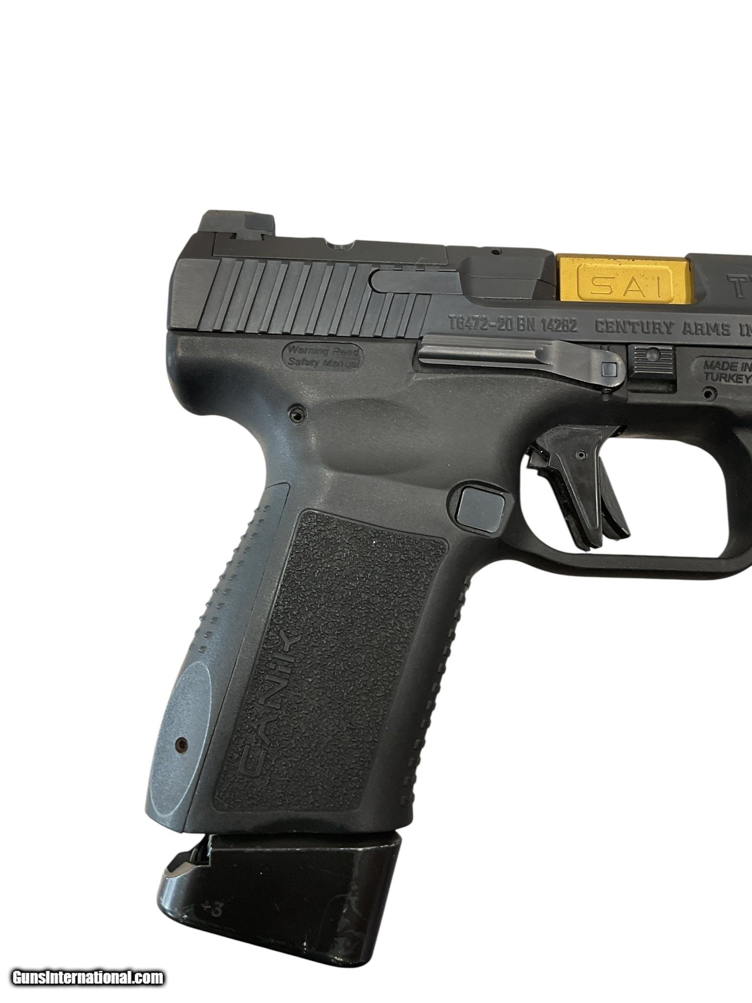 Description: Guns Listing ID: 558517 Canik TP9 Elite Combat in 9mm. Imported by Century Arms. No box, one 18 round magazine, threaded gold-colored barrel, optic cut. Does NOT ship with a hard or soft case. SOLD Manufacturer: CANIK Model: TP9 ELITE COMBAT Caliber Info: 9MM LUGER (9x19 PARA) Condition: Used - Non-Certified Barrels: 4.8 BARREL Action: SEMI AUTOMATIC Finish: black |