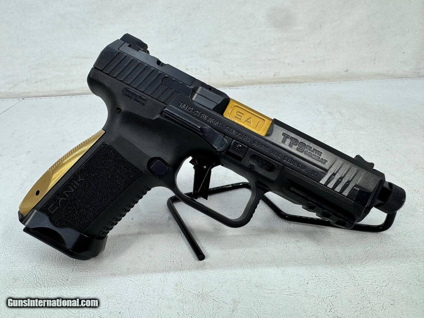 Description: Guns Listing ID: 559960 Includes Cleaning brush, sight mounts, extra back plates, easy loader, manual, tools and screws in Original Box. Canik TP9 Elite Combat Executive 9mm Luger 4.73in Black/Gold Pistol - 3x15 Round Mags - Based on the 2019 TP9 Elite Combat utilizing performance upgrades designed by Salient Arms International, the Executive features a distinctive gold barrel by Salient, fluted, match-grade, and PVD-over-nitride coated, and a black polymer frame topped with a nitride-coated jet black slide. The Executive is suppressor ready with 1/2 x 28 RH threads. Action: Semi-Auto Capacity: 15rd Barrel Length: 4.73in Finish:Black/Gold Grips: Gold/Black Polymer Sights: Fiber Optic Front Cartridge: 9mm Luger Gun Model: TP9 Elite Combat Executive Hand: Right Overall Length: 7.88in Type: Centerfire RR SOLD Manufacturer: CANIK Model: TP9 Elite Combat Executive RD Caliber Info: 9MM LUGER (9X19 PARA) Condition: Used - Non-Certified Barrels: 4.73 BARREL Action: DOUBLE ACTION Finish: BLACK Weight: 1.68 LBS. |
