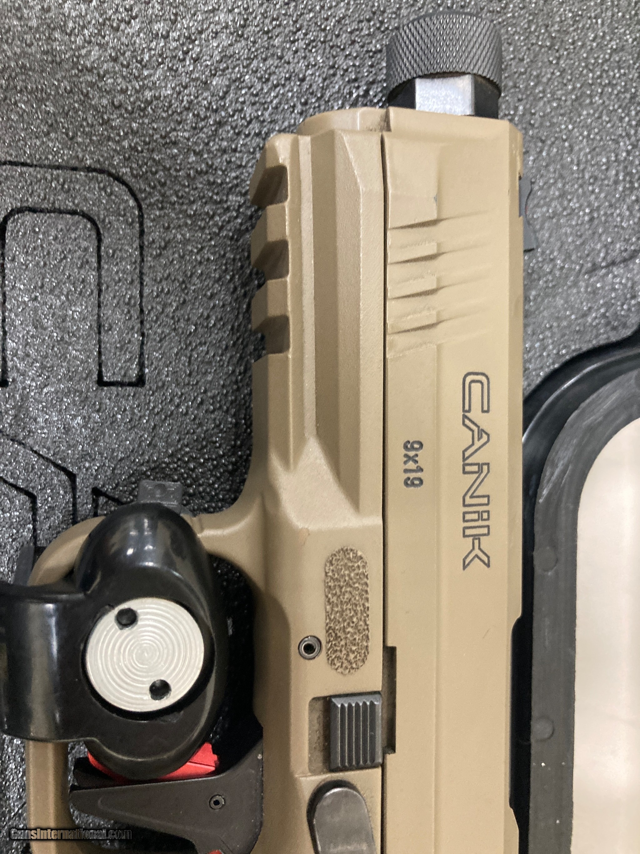Description: Guns Listing ID: 607860 Condition: 9/10 Very little wear Features: 9x19mm 2x 15 round magazines Front rail Threaded barrel Sight mount Trigger safety Slide safety Glow sight replacements Allen key Screws (A08005270) (SR) SOLD Manufacturer: CANIK Model: TP9 ELITE COMBAT Caliber Info: 9X19MM Condition: Used - Non-Certified Barrels: 5 BARREL Finish: FDE |