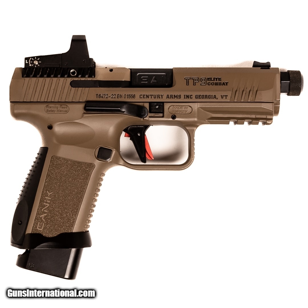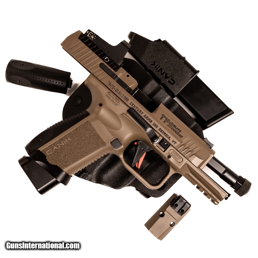 Description: Guns Listing ID: 686620 The Canik TP9 Elite Combat is a budget-friendly firearm that boasts exceptional performance. Canik firearms have become increasingly popular and are great for self-defense, recreational shooting, as well as competition shooting. This TP9 Elite Combat has a Canik Enhanced Trigger (CET™) flat-face aluminum trigger design with nickel-coated internal components and a Cerakote-over-Nitride slide and frame. Other features: Salient Arms International Convex thread protector with 1/2x28 right-hand threads, optics-ready slide with one adapter plate that accepts the Vortex Viper optic footprint, and an extended magazine release. Purchase includes the original case, owner‚‚s manual, one 15-round magazine, one 18-round magazine, loader, cleaning kit, ADE RD3-006B1 tactical green dot sight with two covers, the original optic top plate with rear sight, and a right-handed OWB Canik holster. Get the best bang for your buck when you get a Certified Used Firearm . When you see the Certified Used stamp on any of our firearms, you can be confident that you’re getting exactly what you want – a gun only in very good to excellent condition and held to the highest quality standard. All Certified Used Guns come with a ‘no questions asked’ return policy . PLUS, ALL CERTIFIED USED GUNS SHIP FREE SOLD Manufacturer: CANIK Model: TP9 ELITE COMBAT Caliber Info: 9MM LUGER (9X19 PARA) Condition: Used - Certified Barrels: 4.7 barrel Finish: FDE |