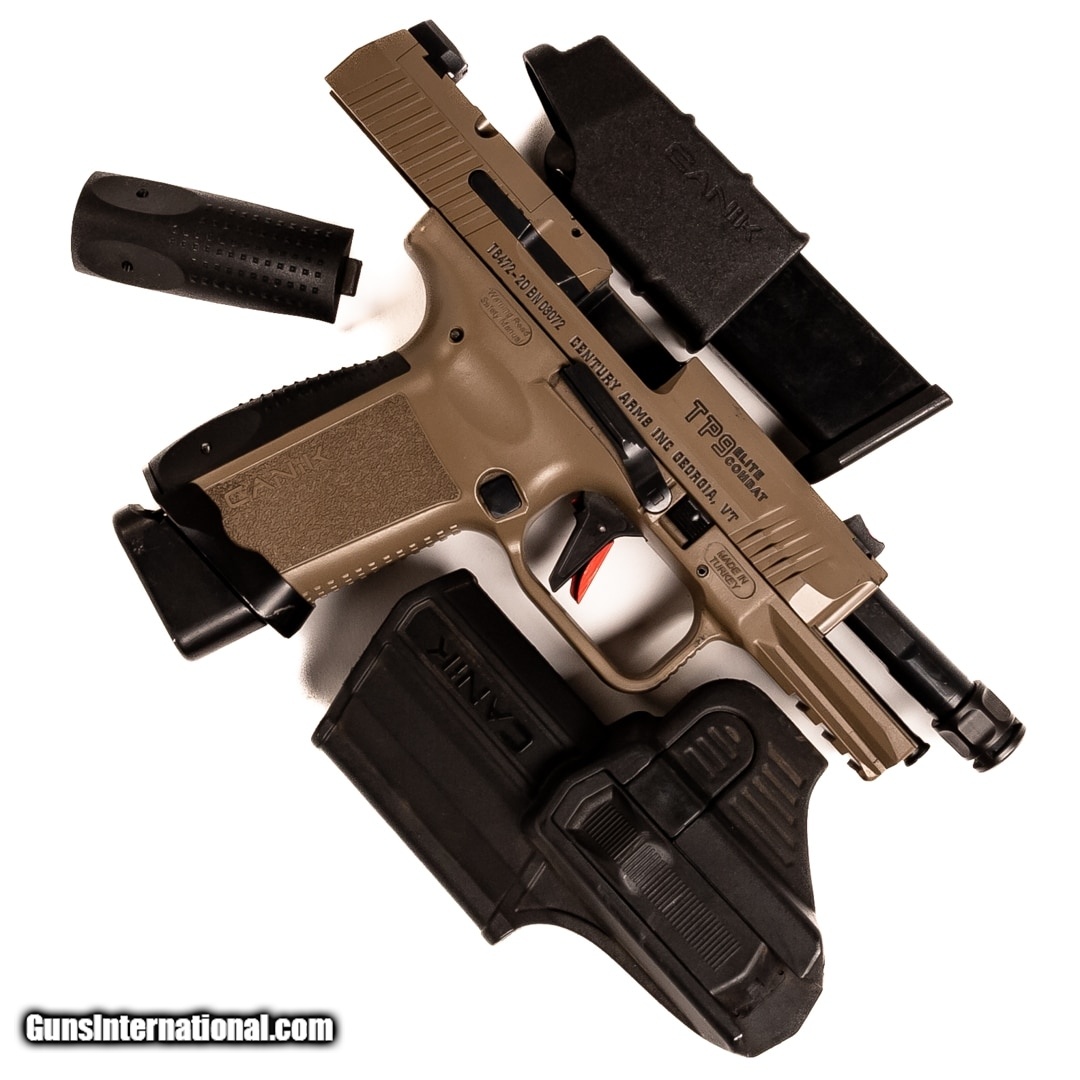Description: Guns Listing ID: 744337 The Canik TP9 Elite Combat is a budget friendly firearm that boasts exceptional performance. Canik’s have become increasingly popular and are great for self-defense, recreational shooting, as well as competition shooting. This handgun features a threaded barrel. 2-15 round magazines, optic mounting plates, holster, and the original case are included. Get the best bang for your buck when you get a Certified Used Firearm . When you see the Certified Used stamp on any of our firearms, you can be confident that you’re getting exactly what you want – a gun only in very good to excellent condition and held to the highest quality standard. All Certified Used Guns come with a ‘no questions asked’ return policy . PLUS, ALL CERTIFIED USED GUNS SHIP FREE! SOLD Manufacturer: CANIK Model: TP9 ELITE COMBAT Caliber Info: 9MM LUGER (9X19 PARA) Condition: Used - Certified Barrels: 4.2 BARREL Finish: FDE |