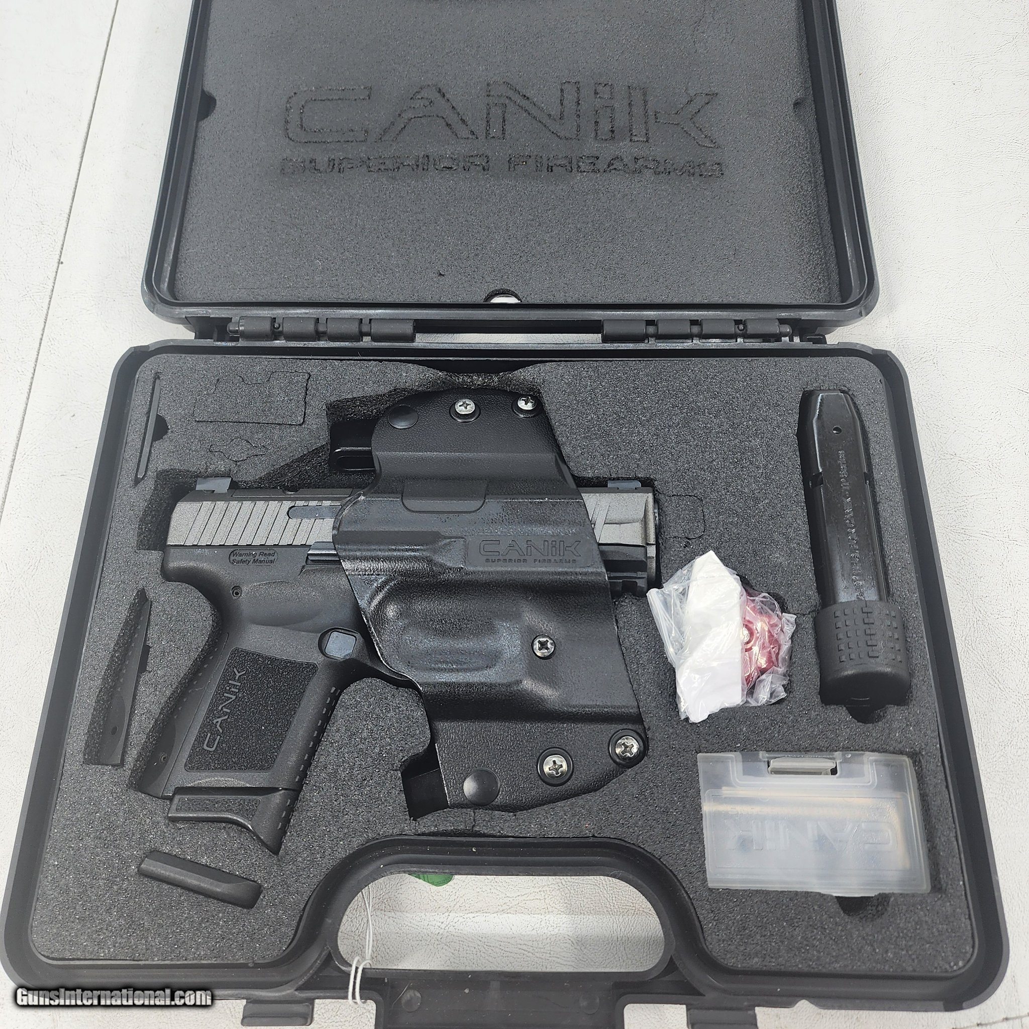 Description: Guns Listing ID: 508029 The TP9 Elite SC was developed to be the first sub-compact version of the TP Series of Pistols with its 3.60-inch barrel. The Elite SC offers the same features as the standard TP9 models, while designed to be snag-free for better concealment and a faster draw. It offers the following features in a sub-compact pistol: comes pre-equipped with double stack magazines, front serrations on the slide, day/night sight options with the capability of co-witnessing with Micro Red-Dots. Concealed carry holster and spare magazine with finger rest is standard in the package; we also include a magazine loader for ease of use. JPOOL SOLD Manufacturer: CANIK Model: TP9 ELITE SC Caliber Info: 9MM LUGER (9x19 PARA) Condition: Used - Non-Certified Barrels: 3.5 Action: SEMI AUTOMATIC Finish: black and gray |