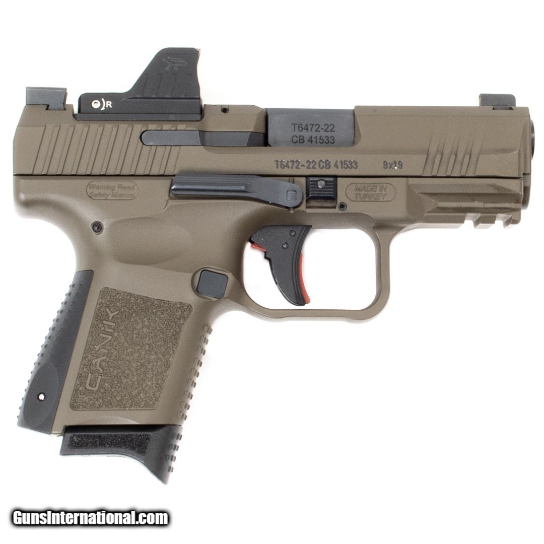 Description: Guns Listing ID: 534197 This optics ready Canik comes with one 15-round magazine, one 12-round magazine, the original case, an ambidextrous slide release, extra backstraps, an OWB holster, and it‚‚s equipped with a luminescent front sight and a Mecanik red dot optic. Get the best bang for your buck when you get a Certified Used Firearm . When you see the Certified Used stamp on any of our firearms, you can be confident that you’re getting exactly what you want – a gun only in very good to excellent condition and held to the highest quality standard. All Certified Used Guns come with a ‘no questions asked’ return policy . PLUS, ALL CERTIFIED USED GUNS SHIP FREE SOLD Manufacturer: CANIK Model: TP9 ELITE SC Caliber Info: 9MM LUGER (9x19 PARA) Condition: Used - Certified Barrels: 3.50 Action: SEMI AUTOMATIC Finish: fde Weight: 1.4 |