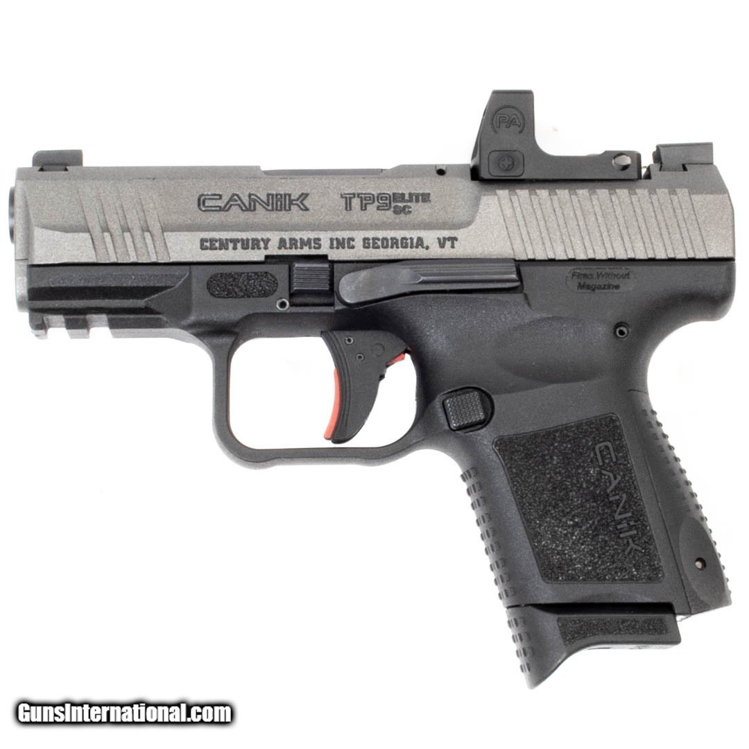 Description: Guns Listing ID: 534387 This Canik TP9 Elite SC features a single dot front with blackout rear sights and a Primary Arms Classic Series 21mm micro reflex sight. Purchase includes the original case, manual, one 12-round magazine, one 15-round magazine, an extra palm swell, and optic plate. Get the best bang for your buck when you get a Certified Used Firearm . When you see the Certified Used stamp on any of our firearms, you can be confident that you‚re getting exactly what you want – a gun only in very good to excellent condition and held to the highest quality standard. All Certified Used Guns come with a ‚no questions asked‚ return policy . SOLD Manufacturer: CANIK Model: TP9 ELITE SC Caliber Info: 9MM LUGER (9x19 PARA) Condition: Used - Certified Barrels: 3.50 BARREL Action: SEMI AUTOMATIC Finish: black Weight: 1.4 |