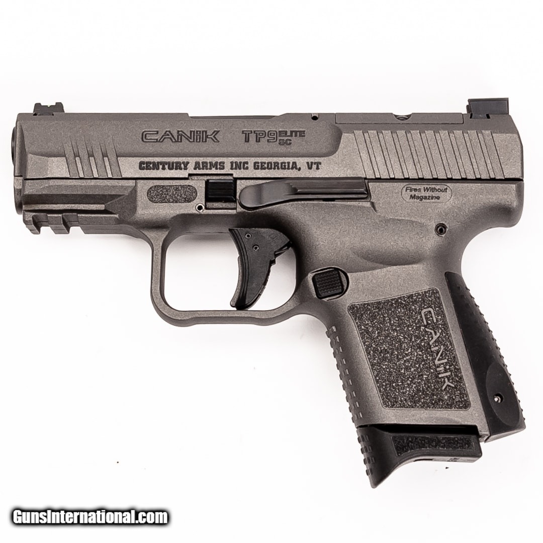 Description: Guns Listing ID: 343574 The Canik TP9 Elite SC (Superior Concealment) is a compact variant of the full-size TP9 Elite. It is a great duty, self-defense, and target pistol and has also won several awards, including the \"Ballistics‚‚ Best\" compact semi-auto award. This TP9 Elite SC is in very good condition! Purchase includes the original case, manual, one 12-round magazine, one 15-round magazine, small and large backstraps, one flush-fit magazine base plate, optic mounting plate, lock, brush kit, tool kit, and a right-handed outside-the-waistband holster SOLD Manufacturer: CANIK Model: TP9 ELITE SC Caliber Info: 9MM LUGER Condition: Used - Certified Barrels: 3.6 BARREL Finish: TUNGSTEN |