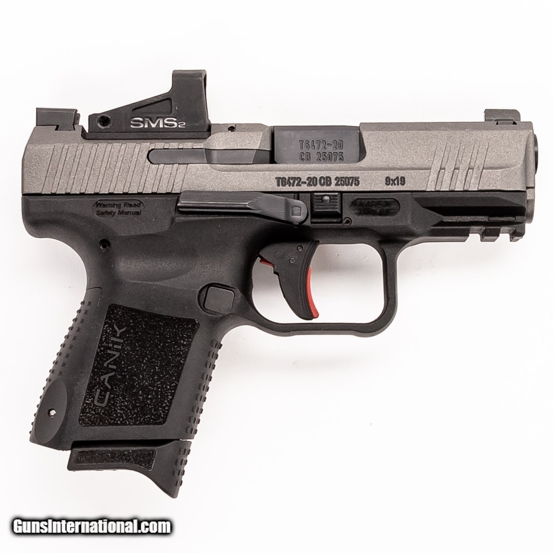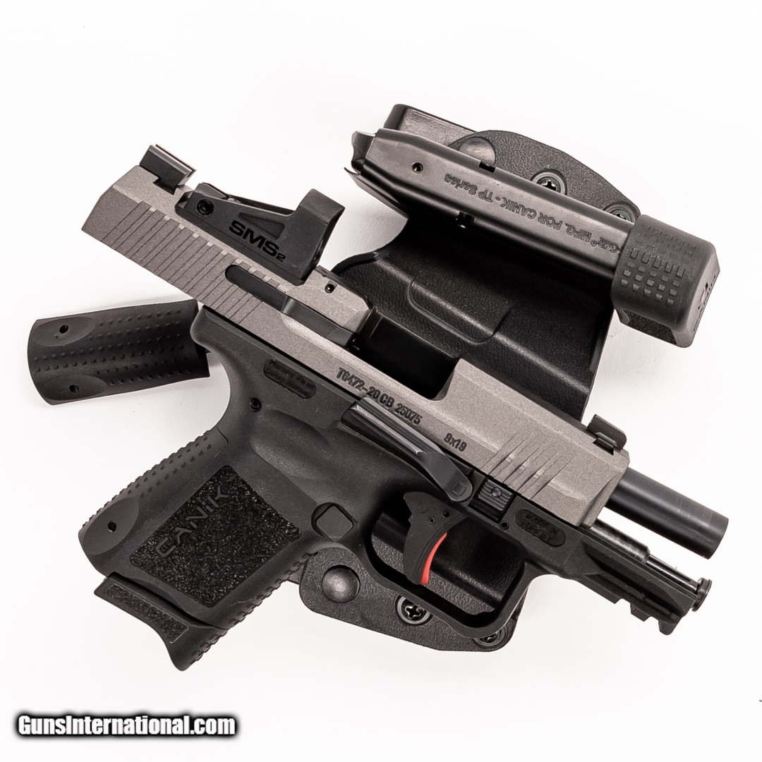 Description: Guns Listing ID: 373117 The Canik TP9 Elite SC (Superior Concealment) is a compact variant of the full-size TP9 Elite. It is a great duty, self-defense, and target pistol. This model has also won several awards including "Ballistics' Best" compact semi-auto award. This handgun includes a Shield SMS2 optic, one 12-round magazine, one 15-round magazine, optic plates, a Canik right-handed holster, and the original case with the manual. SOLD Manufacturer: CANIK Model: TP9 ELITE SC Caliber Info: 9MM LUGER Condition: Used - Certified Barrels: 3.6 BARREL Finish: TUNGSTEN |