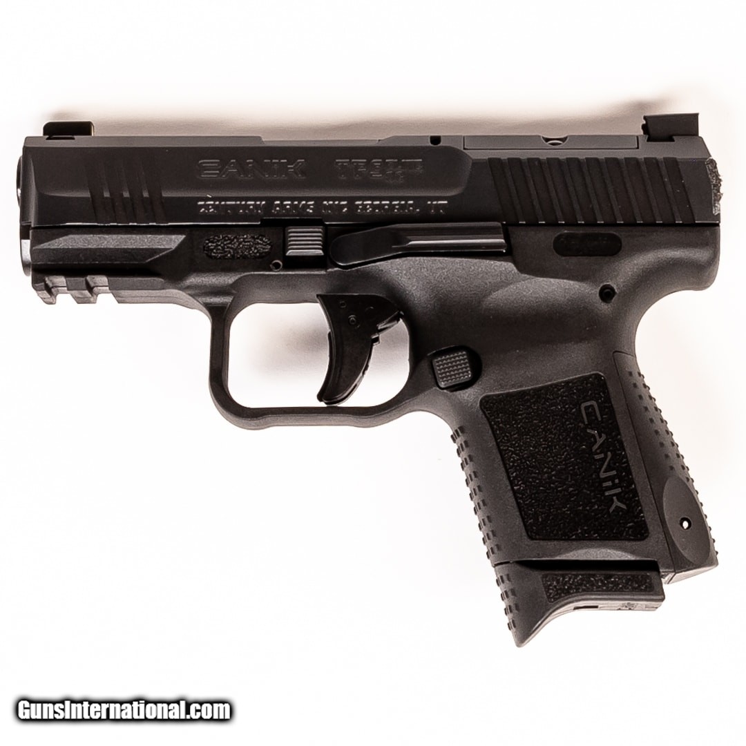 Description: Guns Listing ID: 457857 The Canik TP9 Elite SC (Superior Concealment) is a compact variant of the full-size TP9 Elite. It is a great duty, self-defense, and target pistol. This model has also won several awards including \"Ballistics‚‚ Best\" compact semi-auto award. 1 X 12 round magazine, 1 X 15 round magazine, the original case, an OWB holster, tools, and a manual are included SOLD Manufacturer: CANIK Model: TP9 ELITE SC Caliber Info: 9MM LUGER (9X19 PARA) Condition: Used - Certified Barrels: 3.6 BARREL Finish: BLACK |