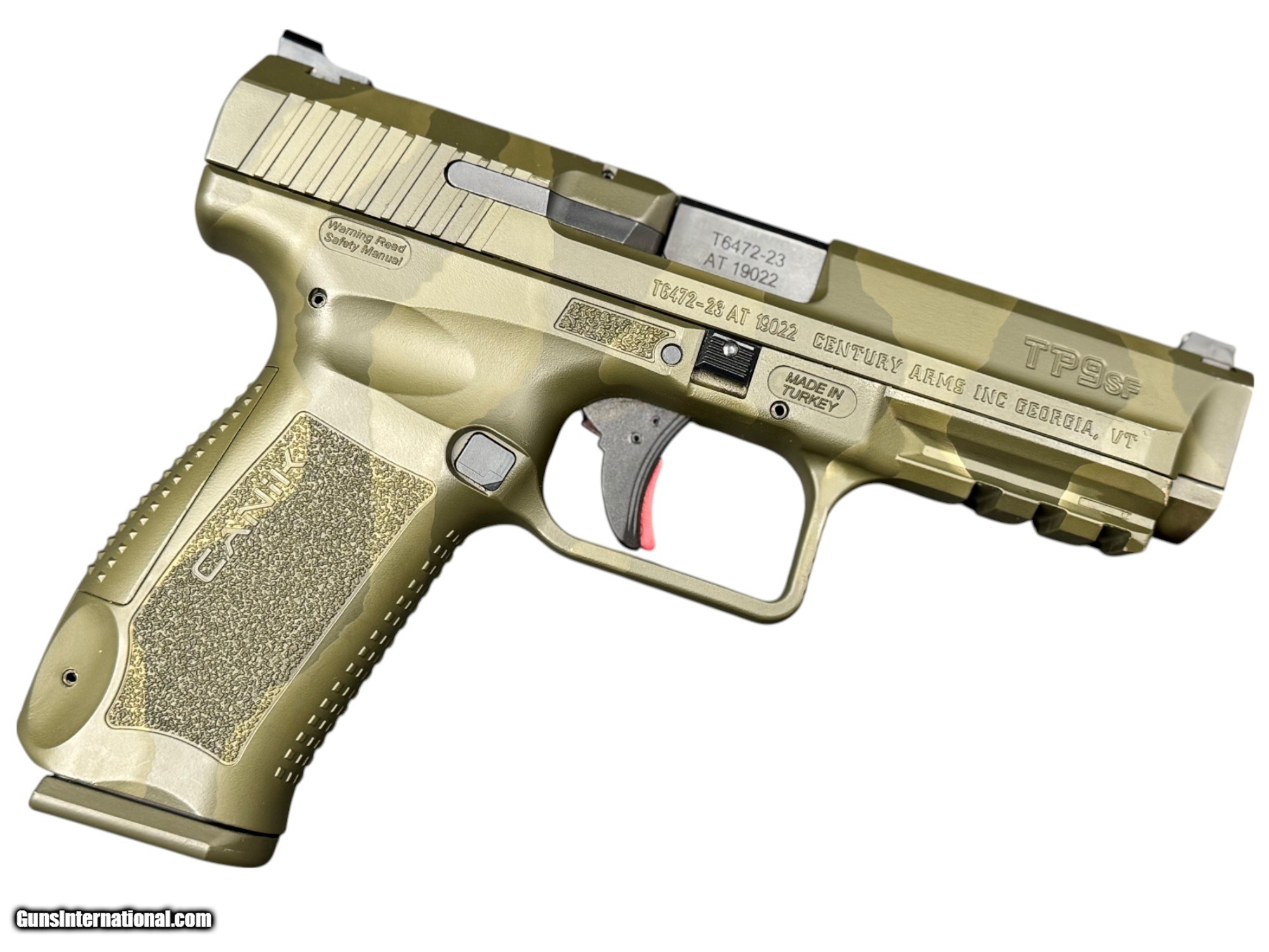 Description: Guns Listing ID: 538570 CANIK TP9 SF CAMO 9MM – TACTICOOL MEETS TURKISH PRECISION This one’s not just another polymer pistol — it’s a Canik TP9 SF wearing its Sunday best: full camo. Chambered in 9mm and built for smooth operation, this striker-fired beast was born to run fast and shoot flat. Chambered in 9mm Two 18-round magazines included Factory camo finish – stand out while blending in Includes original box Striker-fired with a crisp trigger pull that’ll surprise you (in a good way) Whether you’re range-running, night-standing, or just flexing on your range buddies — this TP9 SF brings the value, the style, and the mags to back it up. SOLD Manufacturer: CANIK Model: TP9 SF Caliber Info: 9MM LUGER (9x19 PARA) Condition: Used - Non-Certified Barrels: 4.5 BARREL Action: SEMI AUTOMATIC Finish: camo |