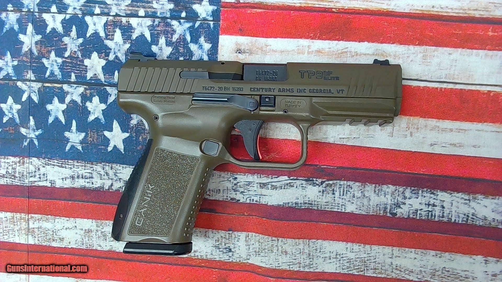 Description: Guns Listing ID: 1090819 Canik Series ONE Tp9sf Elite Patriot Brown - overall good condition. Cerekote is wearing on rear of slide. CANIK SERIES ONE TP9SF ELITE PATRIOT BROWN 15RD The Canik TP9SF ONE SERIES TP9SF ELITE 9mm Striker-Fired Pistol is a semiautomatic pistol with an 15 + 1-round capacity and features a Cerakote barrel finish. This pistol is constructed for increased accuracy, durability and reliability, while the Patriot Brown design provides a cool touch to your shooting gear. Features and Benefits Patriot Brown design provides a cool look Semiautomatic with an 15 + 1-round capacity Cerakote barrel finish Specifications Barrel length (in.): 4.46 Action: Striker Fired Rifle Ammo Type: Centerfire Caliber: 9mm Product weight: 1.8 pounds Style: Pistol Metal finish: Cerakote over nitride Magazine capacity: 15 + 1 Hard plastic case Warren tactical sights 1 magazine SOLD Manufacturer: CANIK Model: TP9 SF Elite Caliber Info: 9MM LUGER (9X19 PARA) Condition: Used - Non-Certified Barrels: 4 BARREL Finish: PATRIOT BROWN |