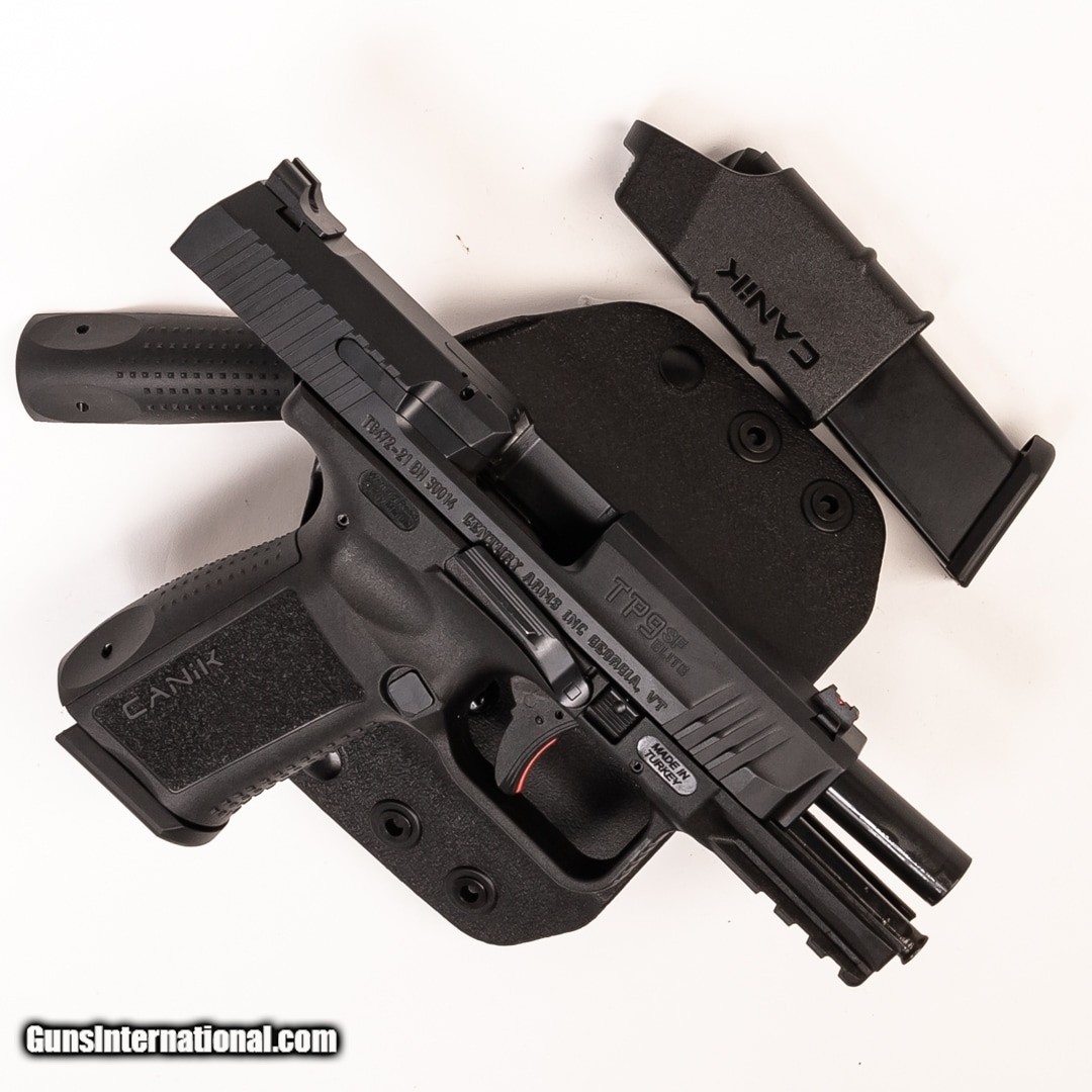 Description: Guns Listing ID: 475607 The Canik TP9 is a semi-automatic striker fired handgun with a similar design to a Walther P99. It is an affordable yet dependable handgun that is perfectly suited for self-defense and even daily carry. This handgun includes an OWB holster, two 15-round magazines, and the original case with the manual. SOLD Manufacturer: CANIK Model: TP9 SF ELITE Caliber Info: 9MM LUGER Condition: Used - Certified Barrels: 4.2 BARREL Finish: BLACK |