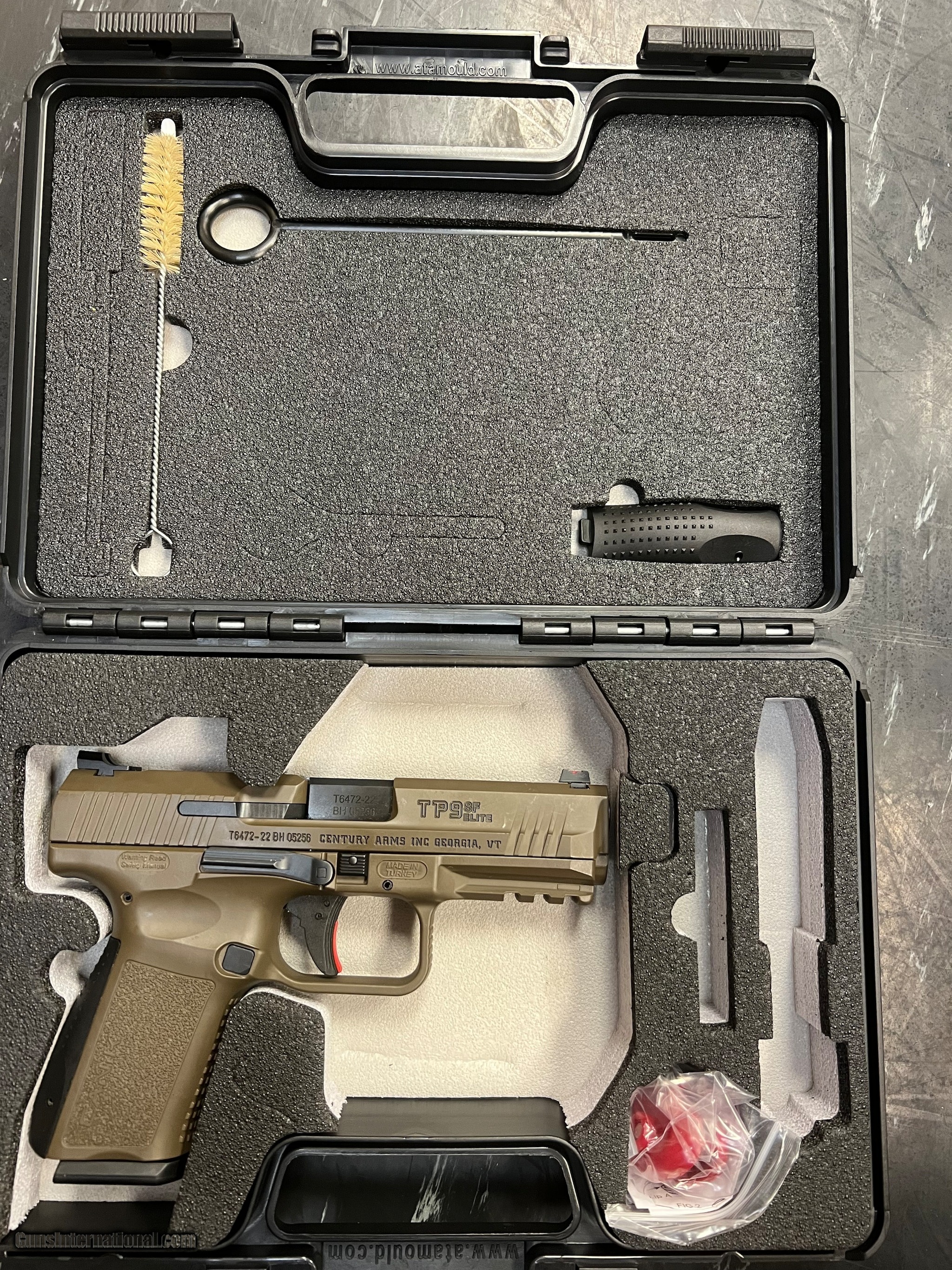 Description: Guns Listing ID: 683653 Warden tactical sights Match grade 4.19\" barrel Slide stop release In case 9mm SOLD Manufacturer: CANIK Model: TP9 SF Elite Caliber Info: 9 MM Condition: Used - Non-Certified Barrels: 4 BARREL Finish: GREEN |