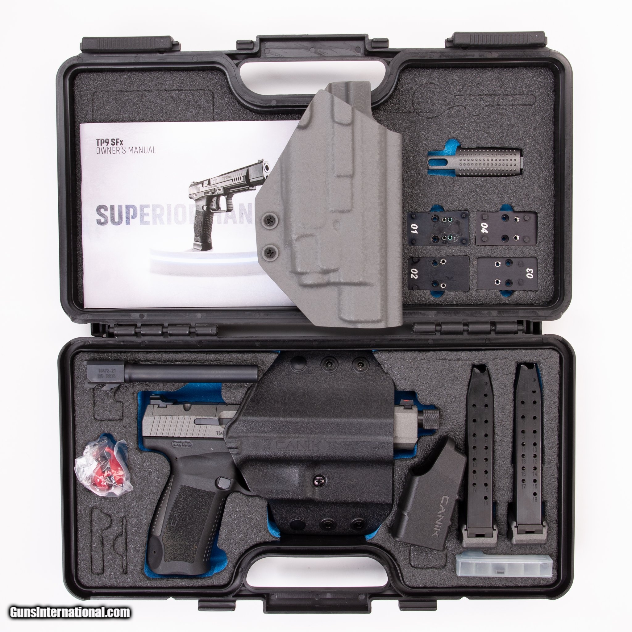 Description: Guns Listing ID: 464885 This optics ready Canik features two 20-round magazines, the original case, owner‚‚s manual, a threaded barrel, the OEM 5.25\" barrel, a fiber optic front sight, an extra backstrap, optic plates, a magazine loader, a right hand OWB holster and a right hand OWB light bearing holster. Get the best bang for your buck when you get a Certified Used Firearm . When you see the Certified Used stamp on any of our firearms, you can be confident that you’re getting exactly what you want – a gun only in very good to excellent condition and held to the highest quality standard. All Certified Used Guns come with a ‘no questions asked’ return policy . PLUS, ALL CERTIFIED USED GUNS SHIP FREE! SOLD Manufacturer: CANIK Model: TP9 SFX Caliber Info: 9MM LUGER (9x19 PARA) Condition: Used - Certified Barrels: 5.75 Action: SEMI AUTOMATIC Finish: BLACK & GREY Weight: 2 |